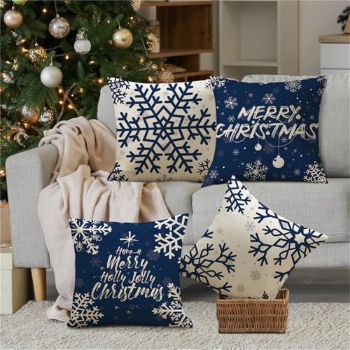 Christmas Pillow Covers 16x16 Blue Christmas Decorations 16 x 16 Pack of 4
