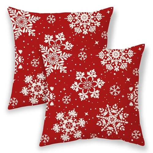 Christmas Pillow Covers 16x16 Inch 2 16 x 16 Pack of 2 Red White Snowflake