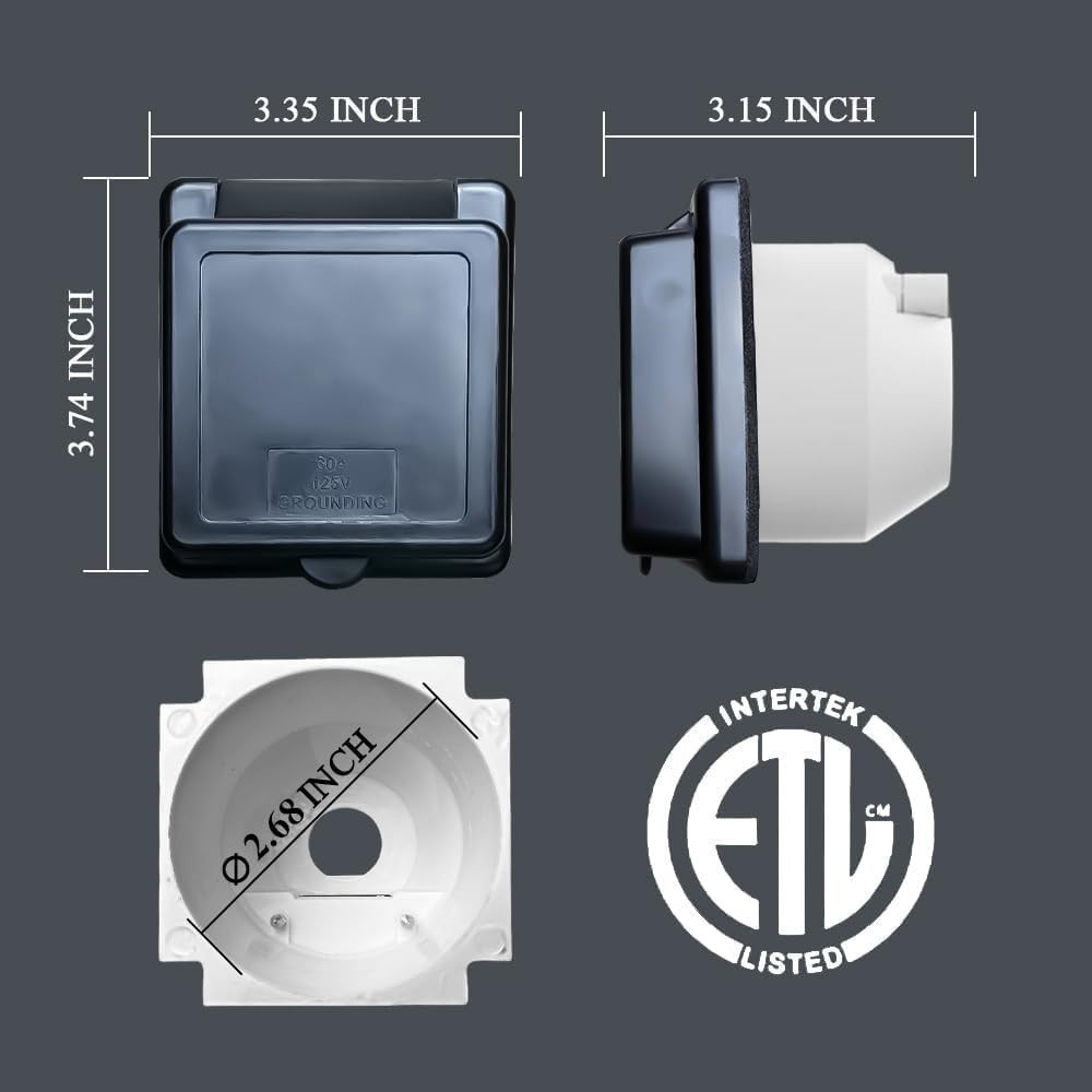 30 Amp RV Plug Power Inlet Box, Shore Power Inlet Replacement for 3 Prong 3