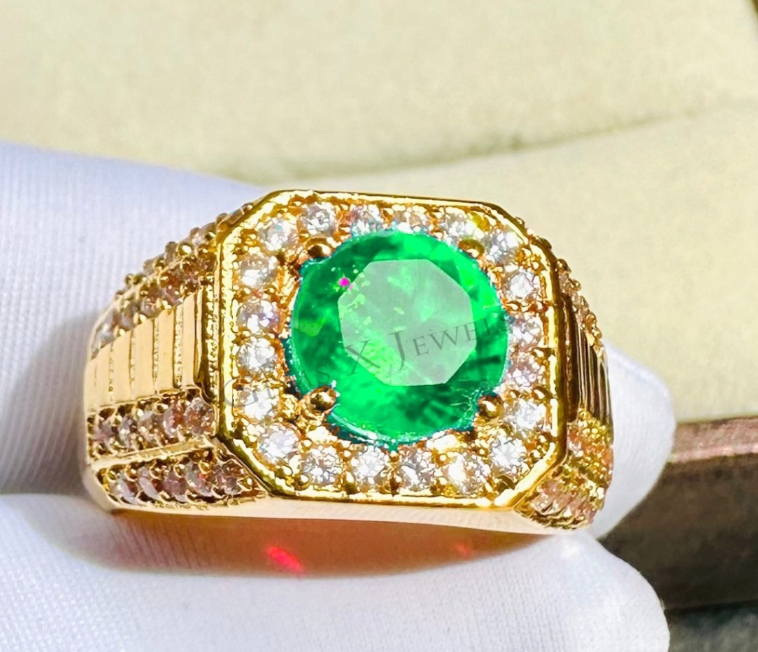 Emerald Men's Ring with 925 Sterling Silver Men's Handmade Green Gemstone Ring