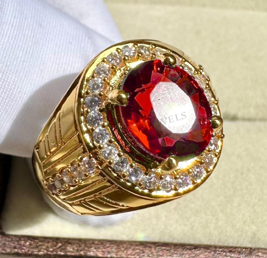 Natural Red Garnet Gemstone Ring With 925 Sterling Silver Men's Engagement Ring