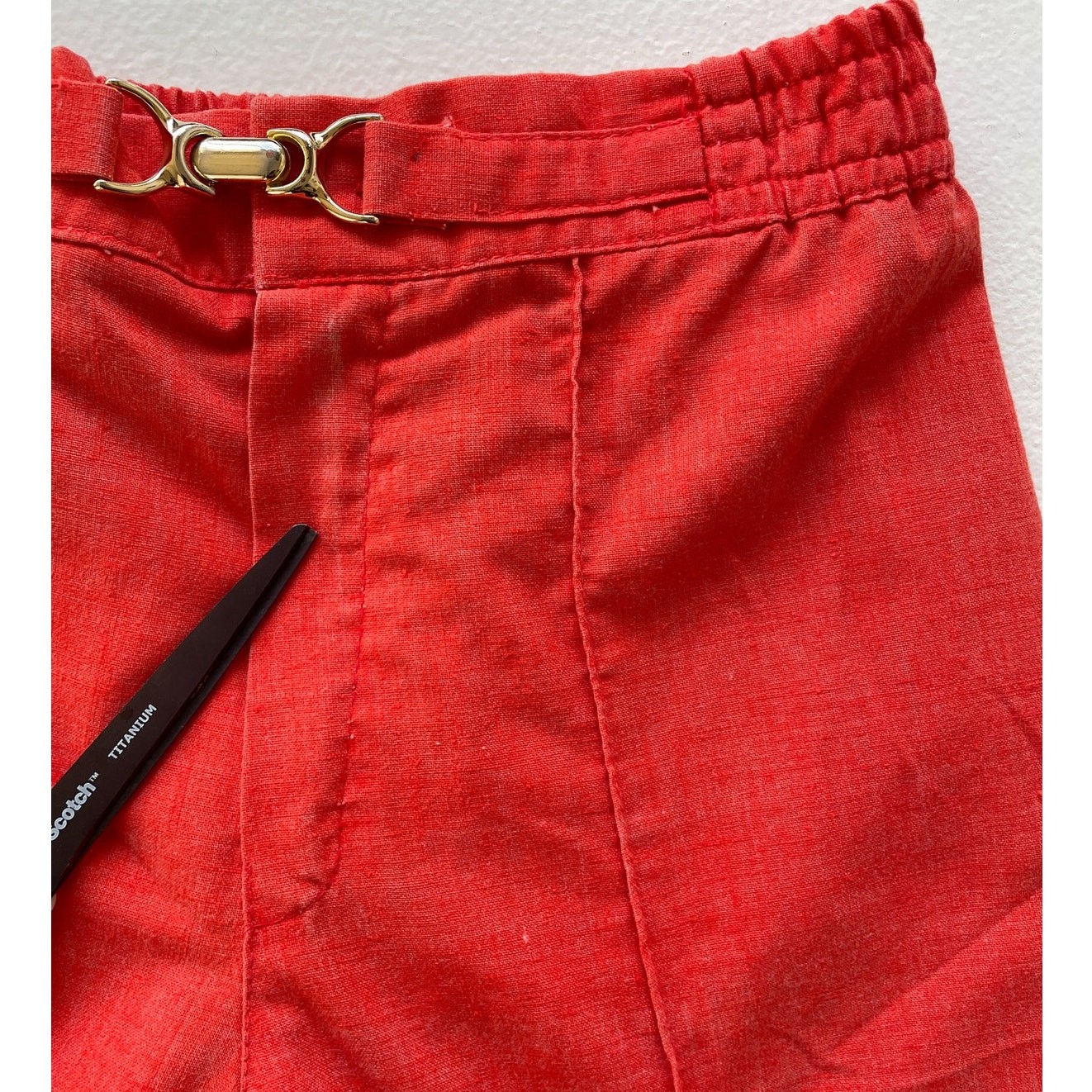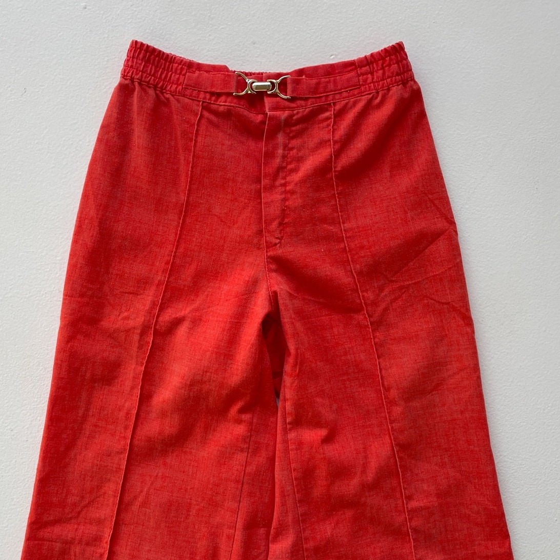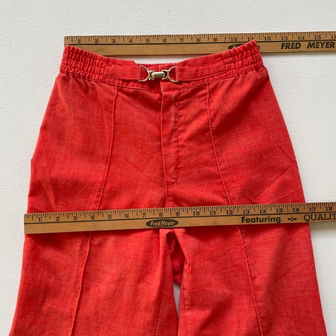 Vtg 70s Orange High Rise Bellbottom Pants / Sz S / Petite Flares Buckle Hippie