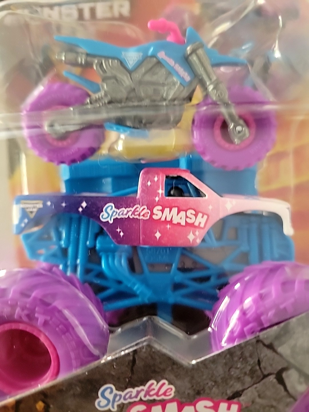 как выглядит New Exclusive Monster Jam Truck SPARKLE SMASH Motorcycle Dirt Bike Series 6 фото