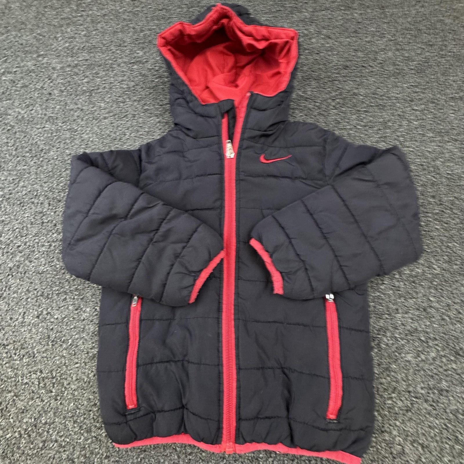 как выглядит Nike Jacket Youth Small Black Red Hooded Quilted Puffer Full Zip Warm Winter фото
