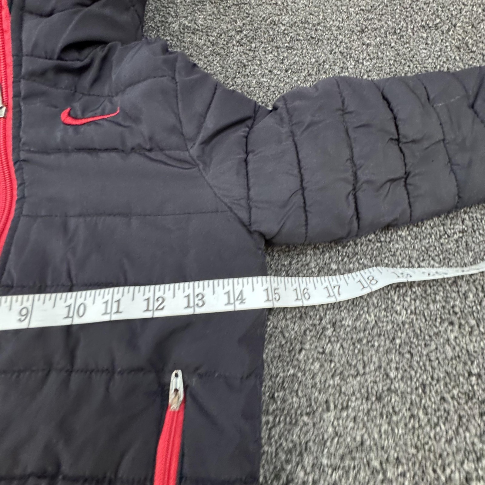 Nike Jacket Youth Small Black Red Hooded Quilted Puffer Full Zip Warm Winter