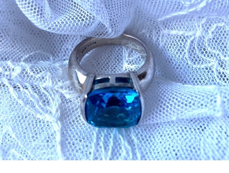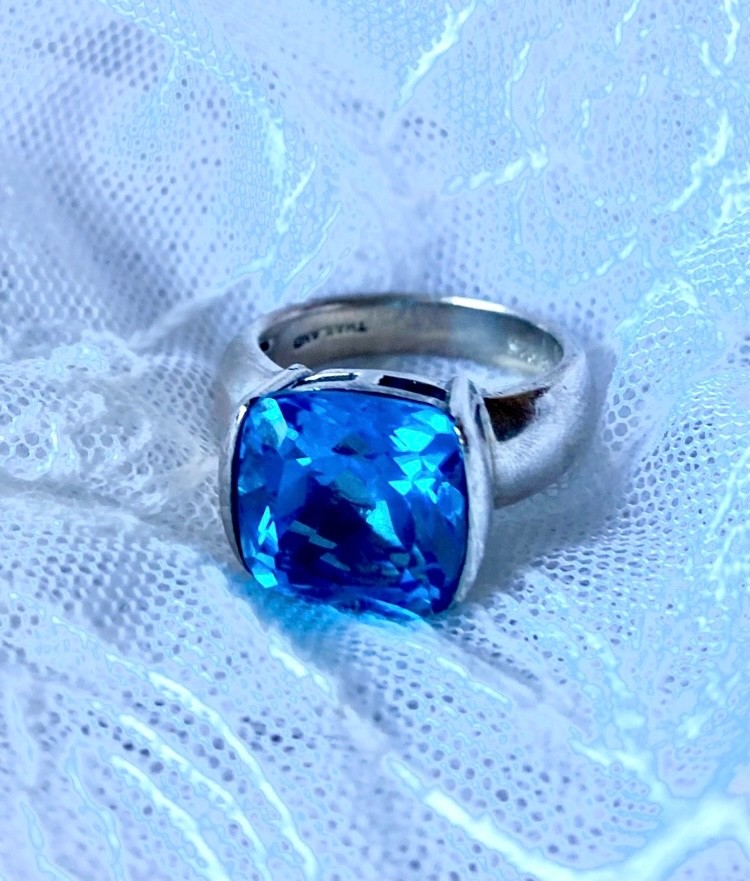 как выглядит Silver 925 Blue Topaz Channel Set Ring 6.75 фото