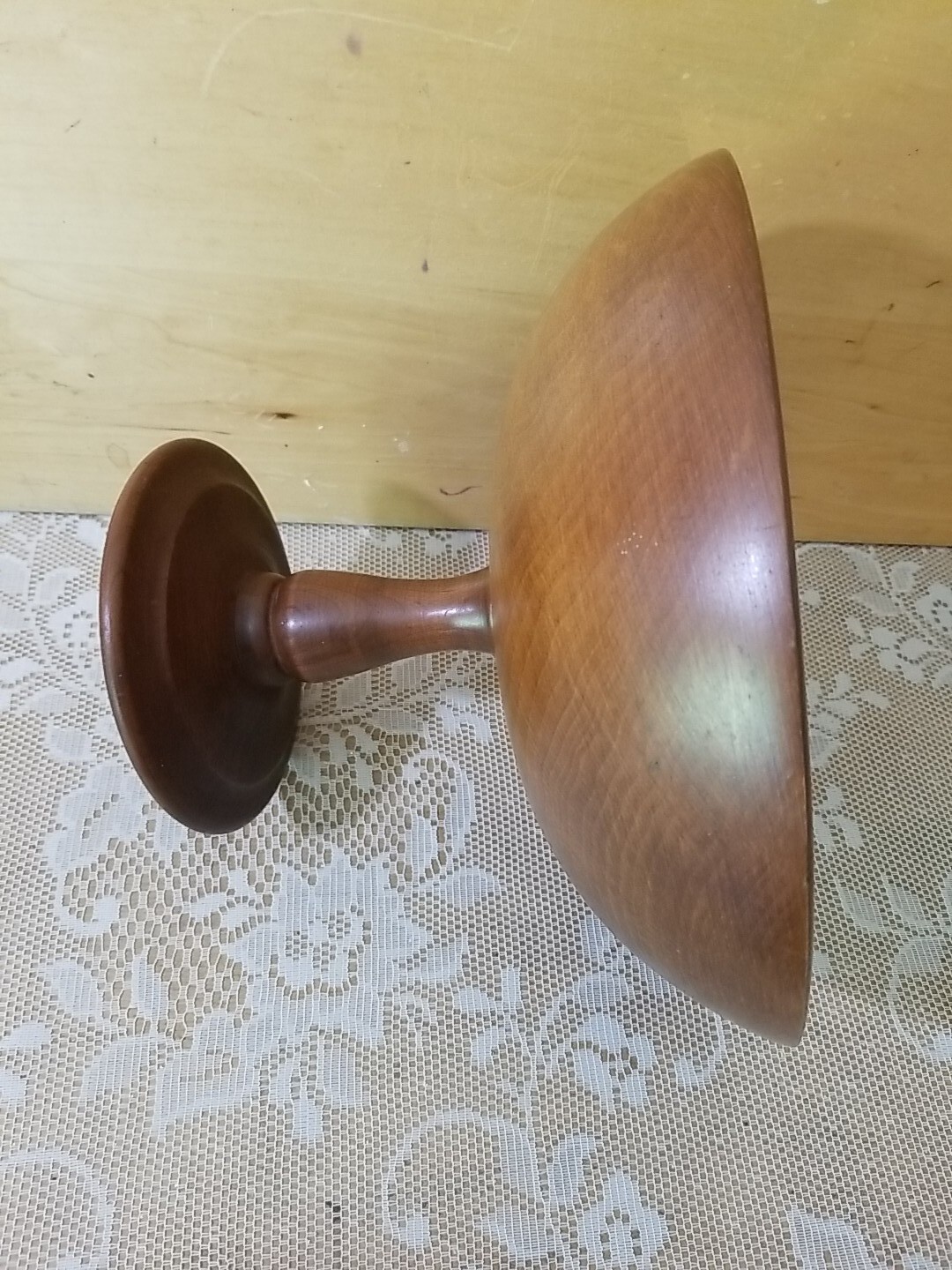 как выглядит Vtg Wooden Bowl Walnut Footed Pedestal Compote фото