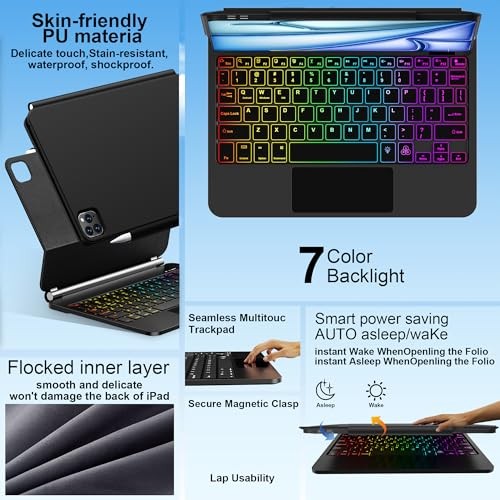 Keyboard Case for iPad Air 13 inch M3 2025/M2, 2024 ,iPad Pro 12.9 inch Black