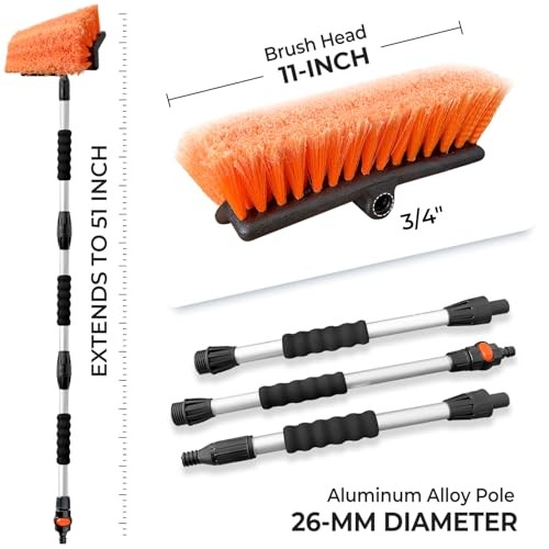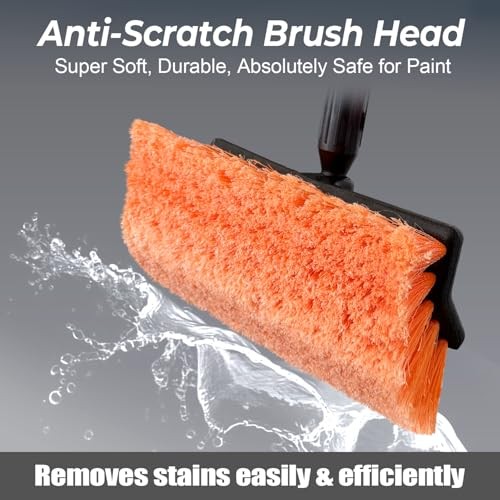 Car Wash Brush with Long Handle, Flow-Thru Soft Bristle Car Washing 51 Orange