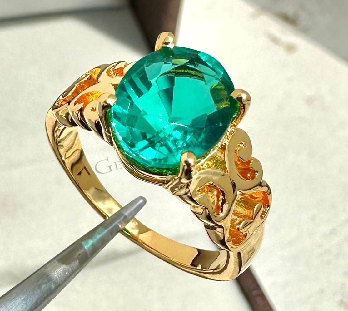 Beautiful Green Emerald Gemstone Ring in 925 Sterling Silver Engagement Ring