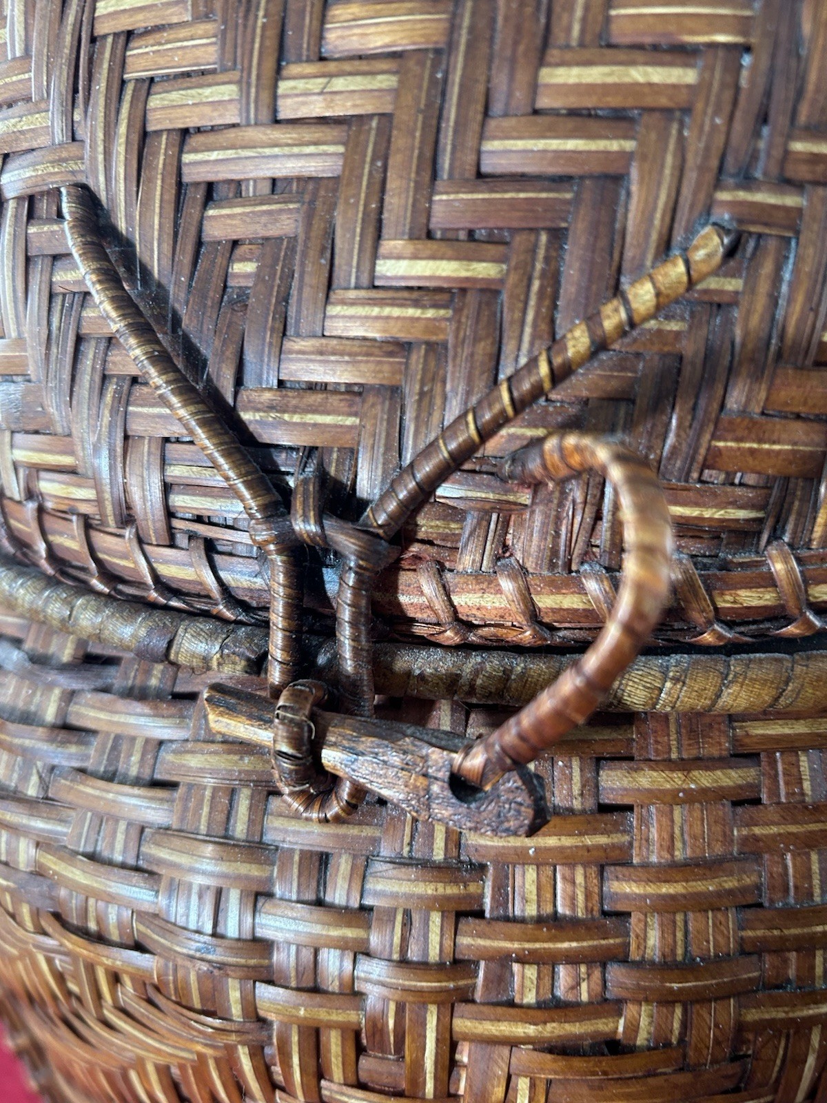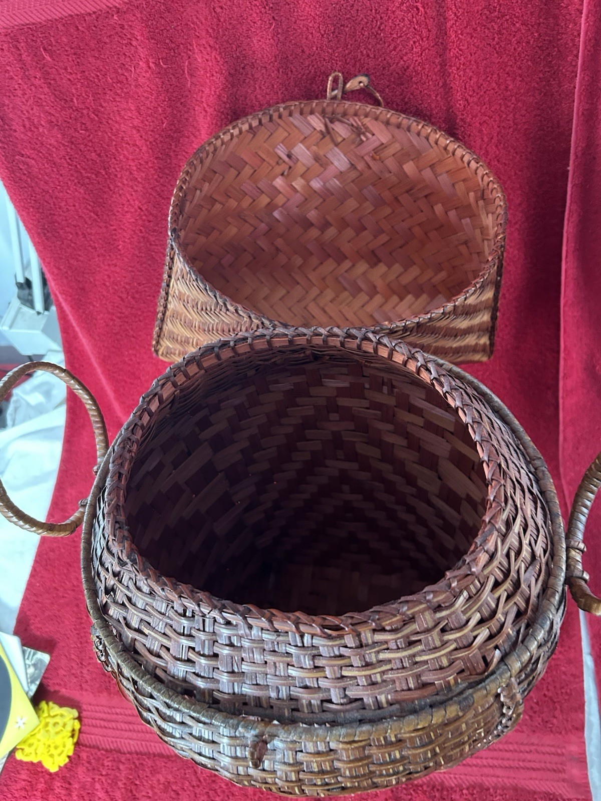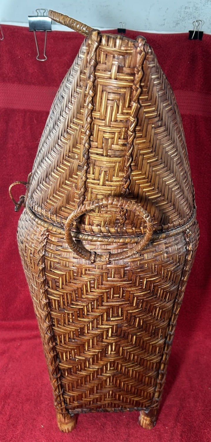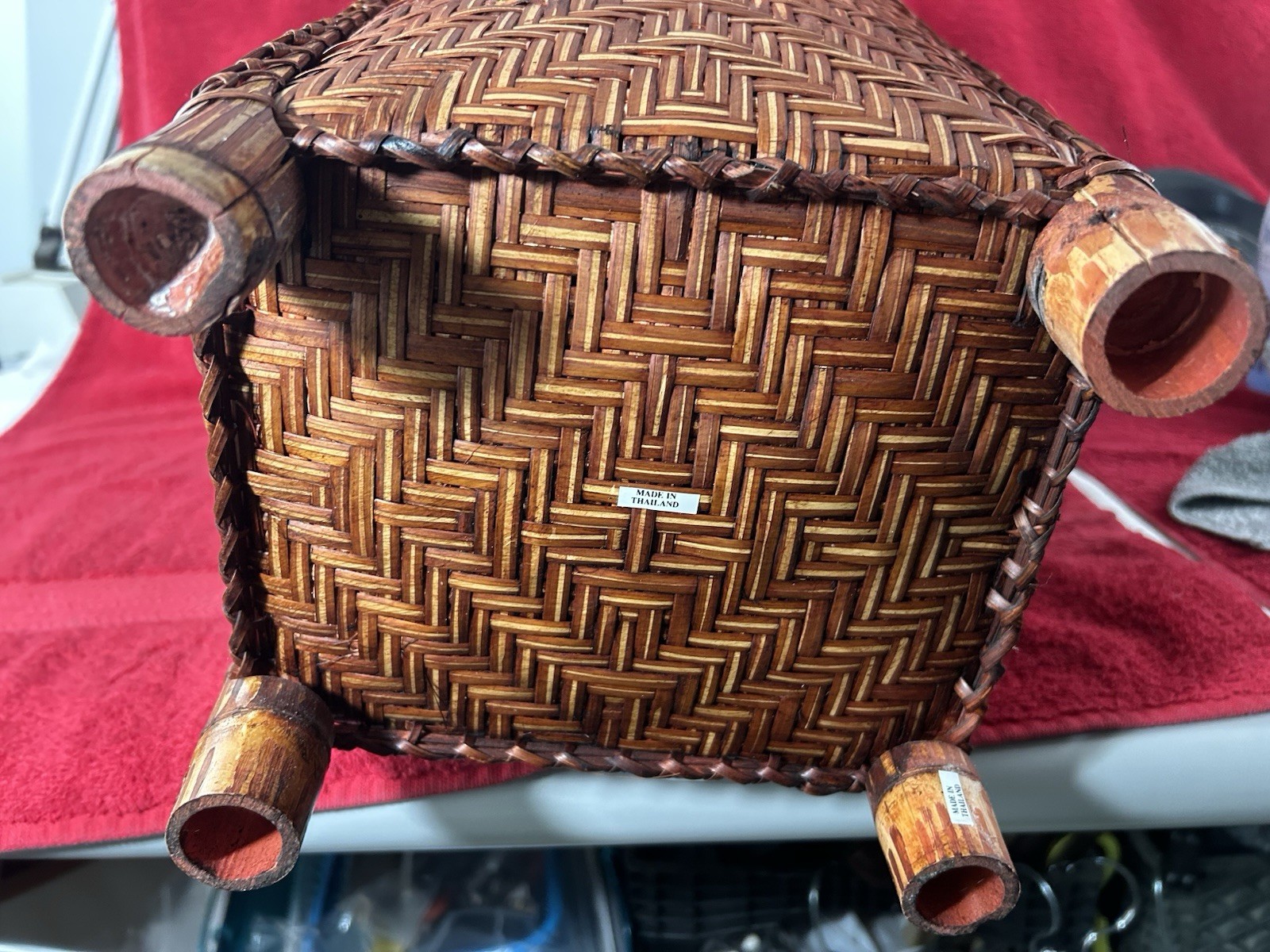 Bamboo Woven Footed Lidded Basket 24 x 14 x 11 Thailand