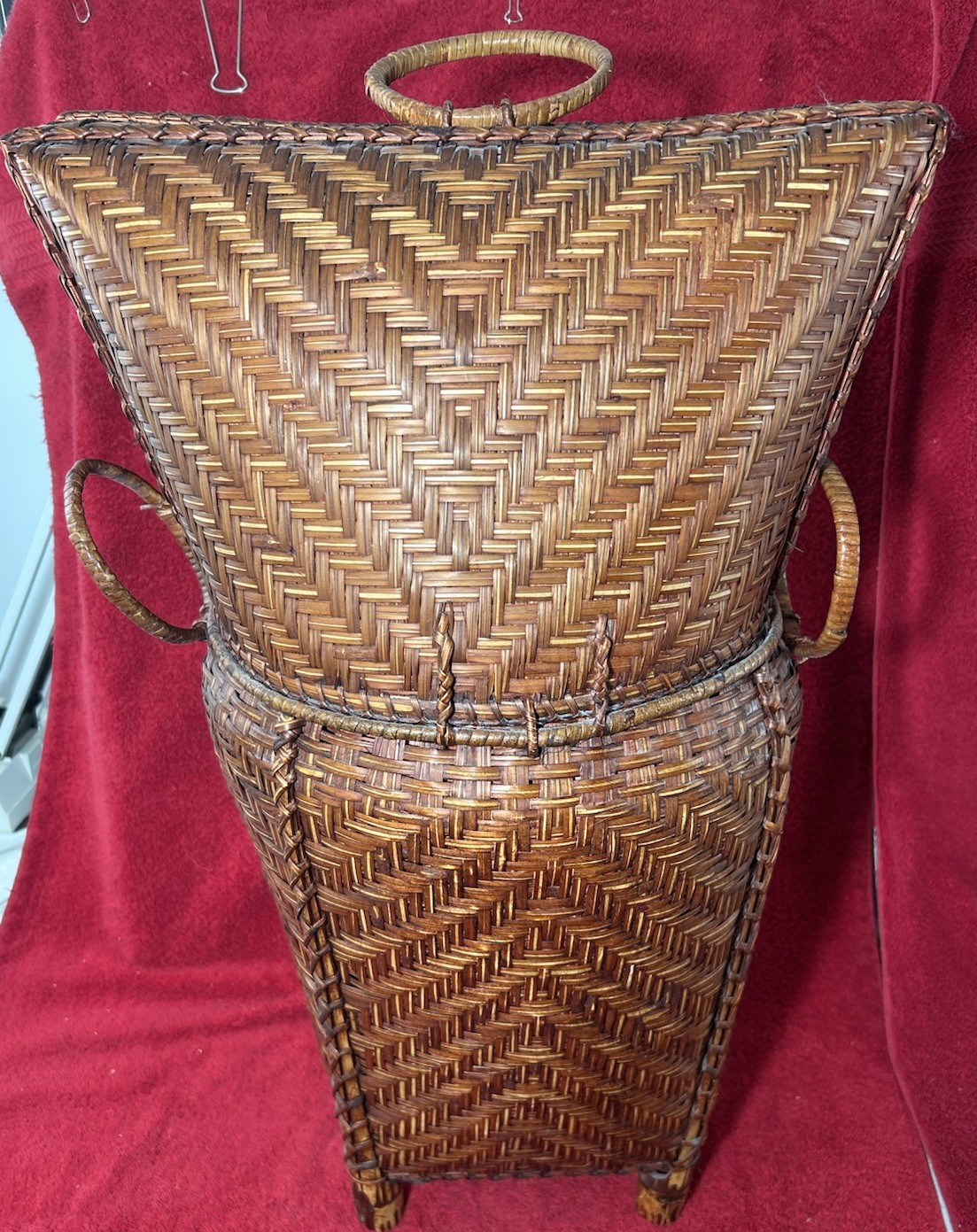 Bamboo Woven Footed Lidded Basket 24" x 14" x 11" Thailand