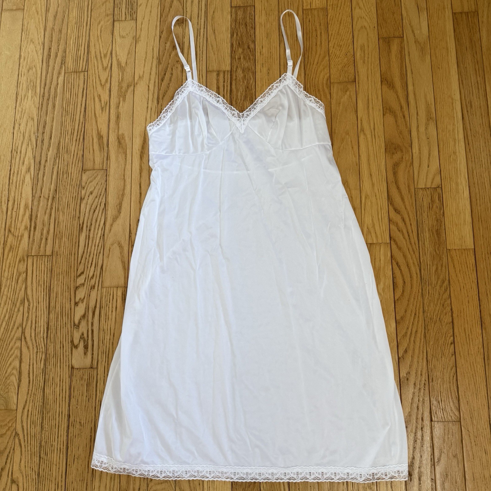 как выглядит Vanity Fair Womens Full Slip White Nylon Lace Size 40 26 фото