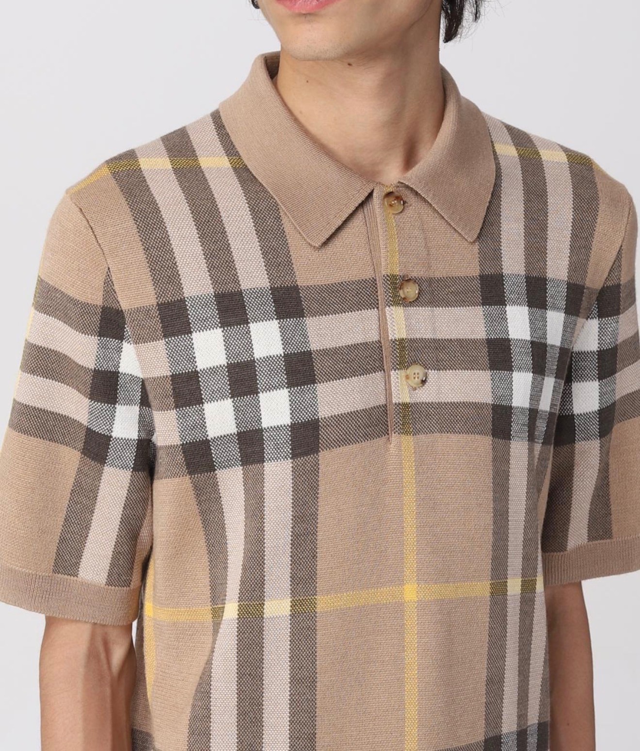 как выглядит Burberry Check Wool Silk Polo Shirt Medium Beige фото