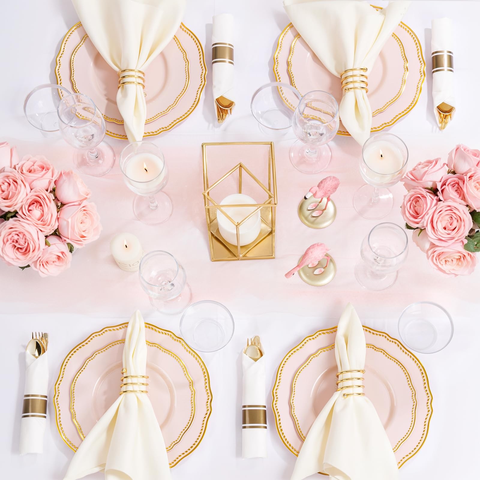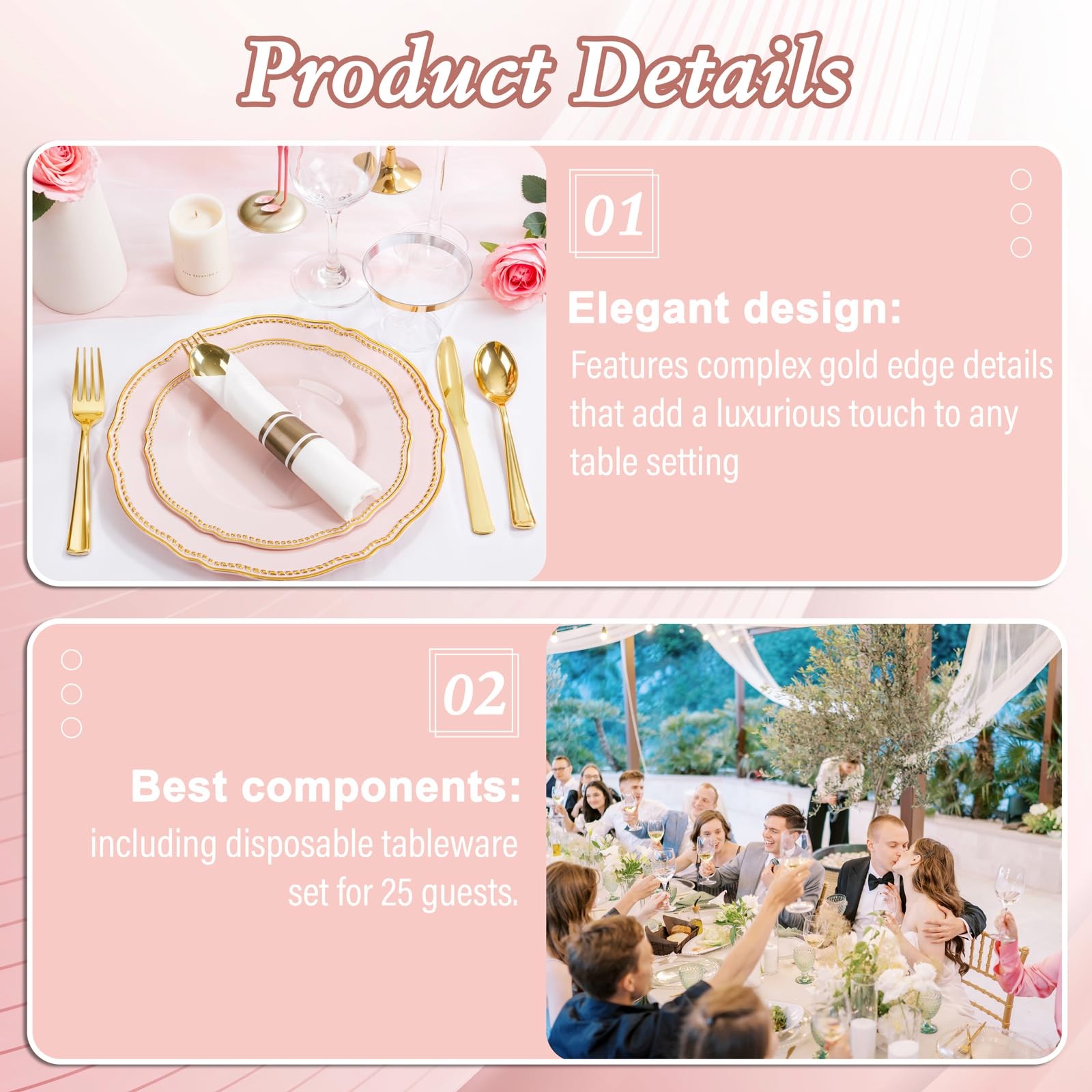 как выглядит 175pcs Pink and Gold Plastic Plates - Pink Plastic Dinnerware Set Includes 25... фото