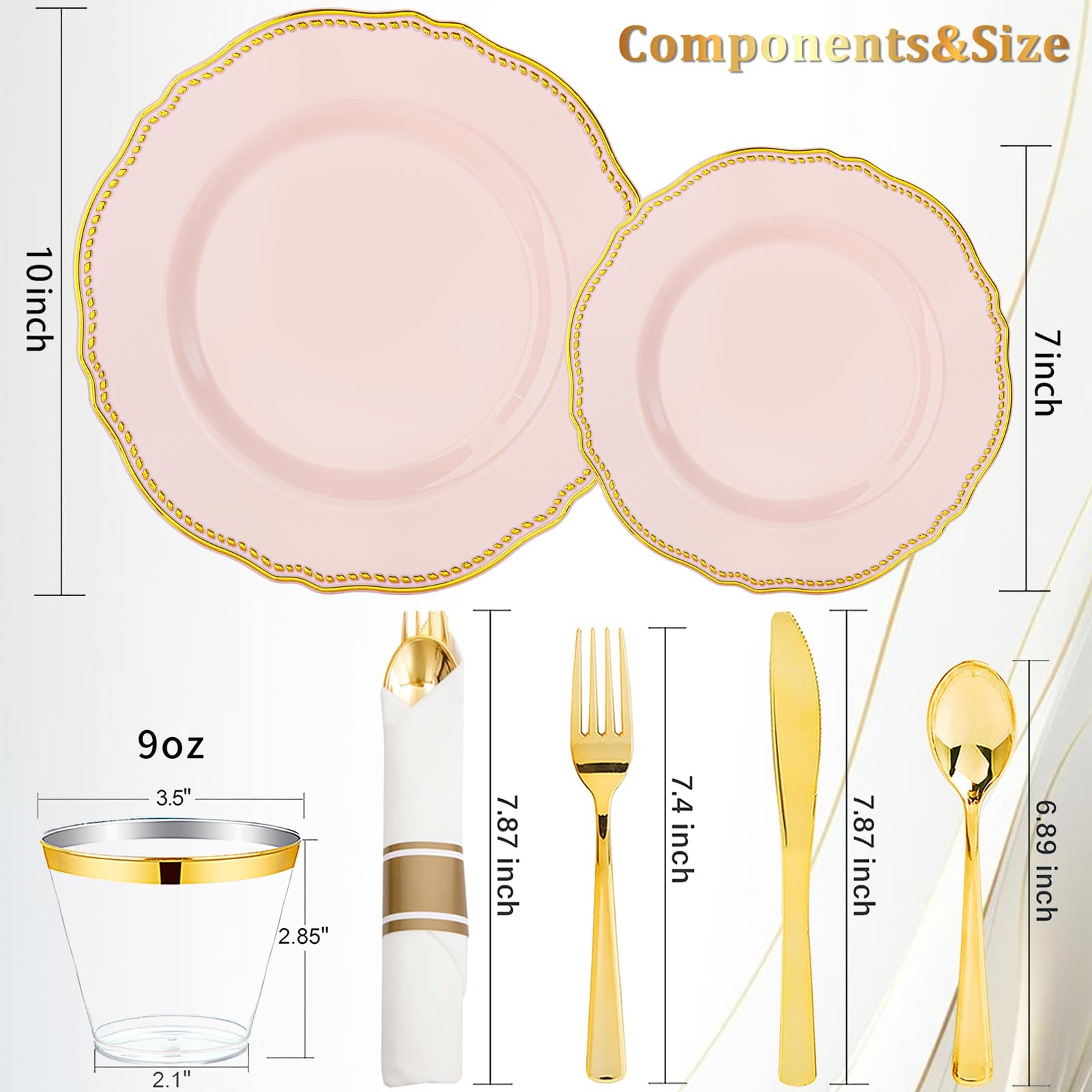 175pcs Pink and Gold Plastic Plates - Pink Plastic Dinnerware Set Includes 25...