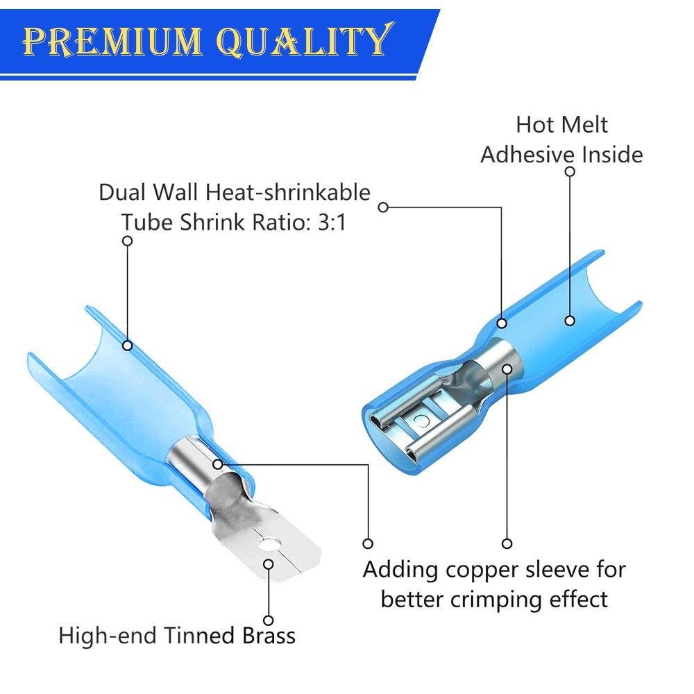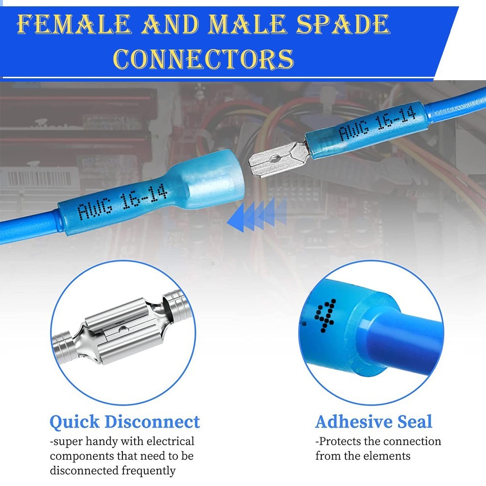 220PCS Heat Shrink Spade Male Female Electrical Wire Terminals Connectors Kit