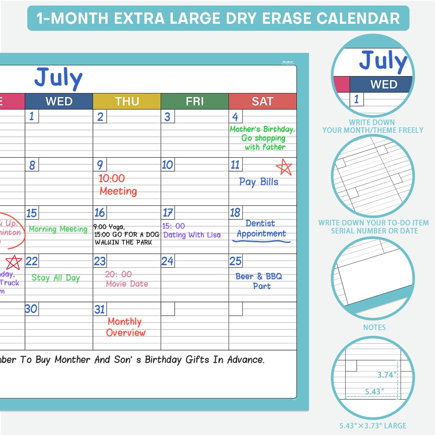 как выглядит Wall Calendar Dry Erase, Reusable Laminated Whiteboard, 40x28 Inches фото