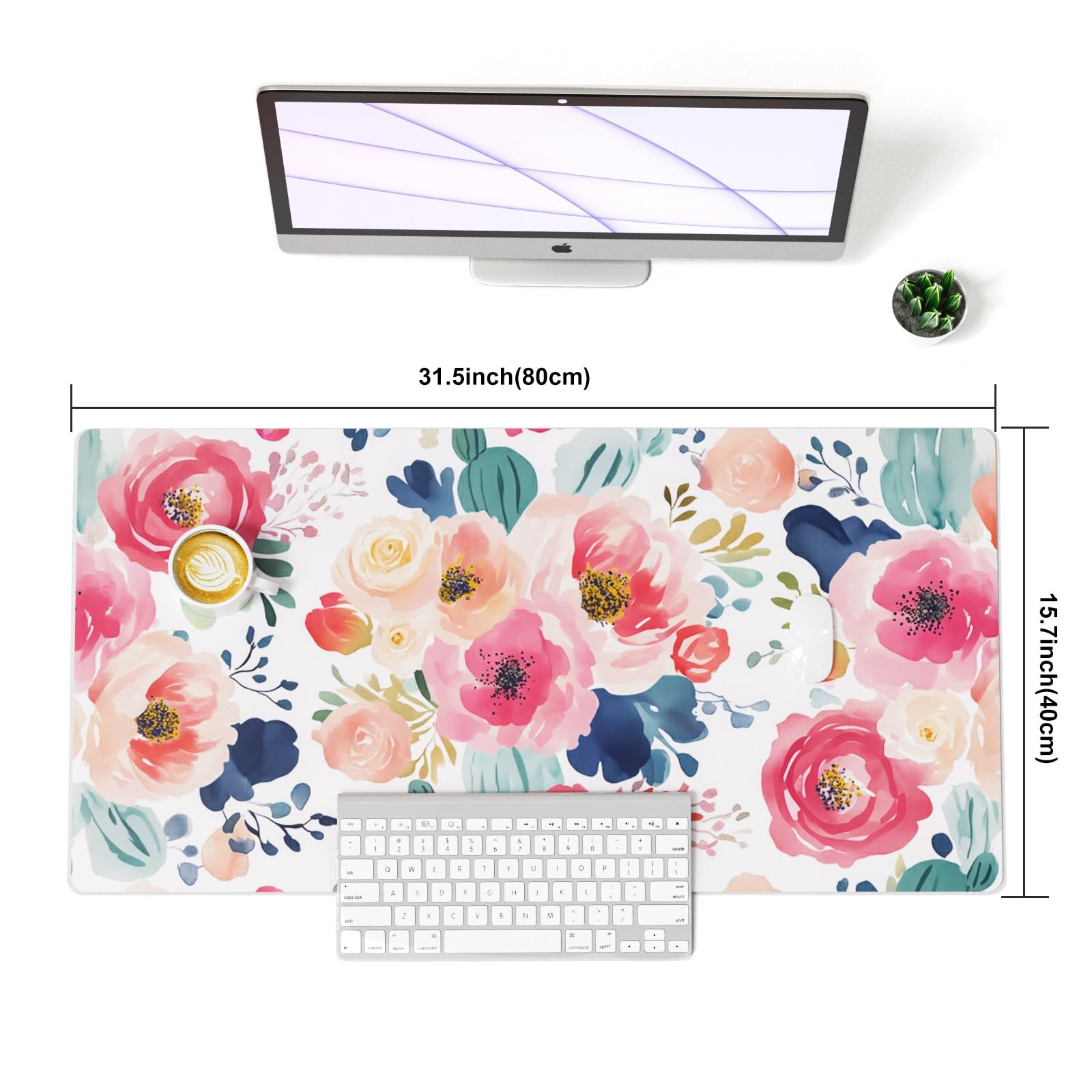 Pink Floral Pad, Large Desk Mat, PC Laptop Protector, Multicolor