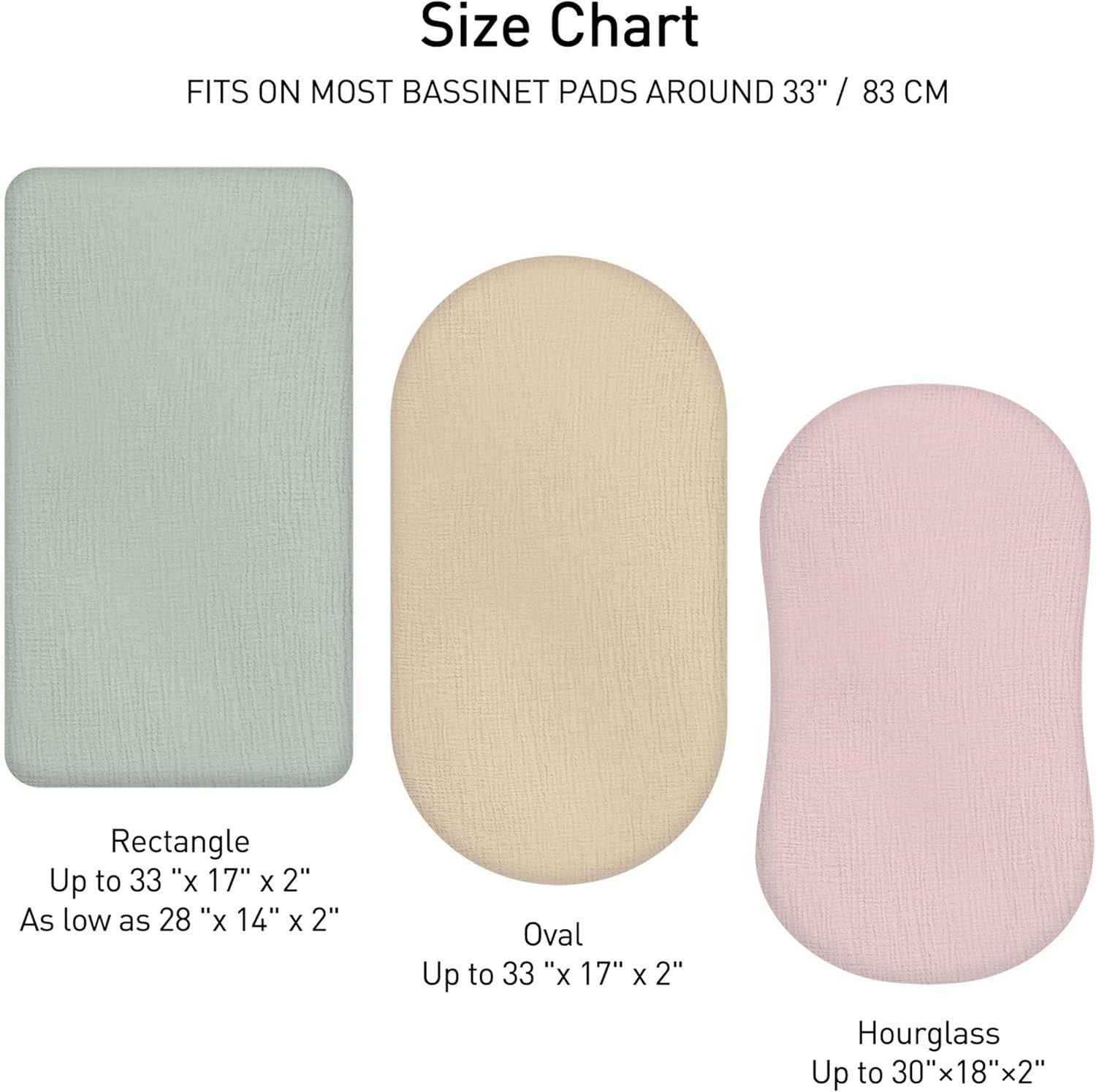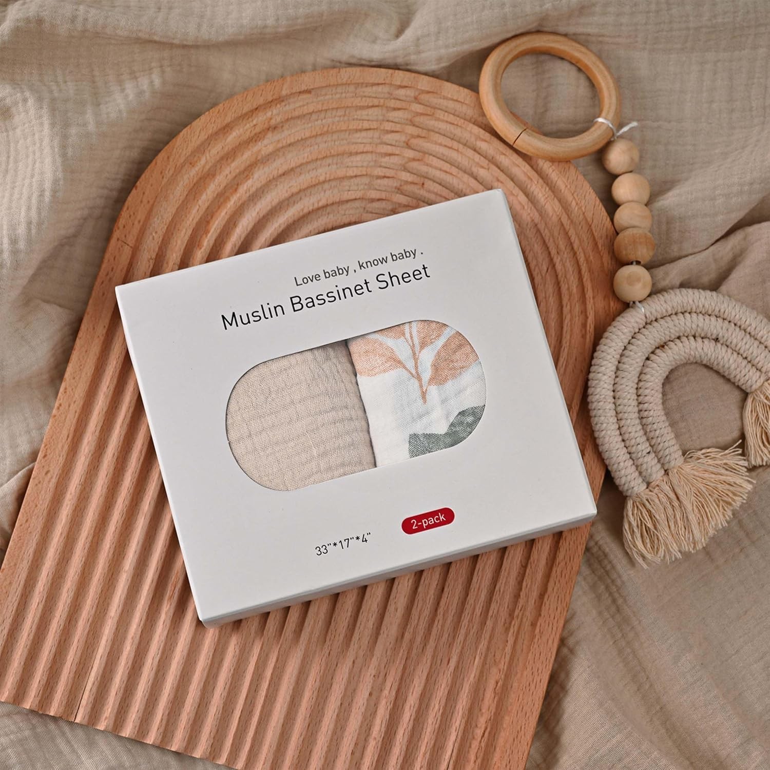 2 Pack Muslin Bassinet Fitted Sheets Soft Breathable Baby Mattress