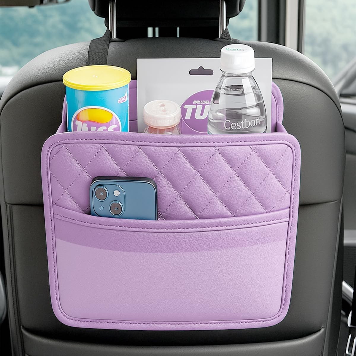 Car Seat Back Organizer, PU Leather Automotive Backseat Hanging Storage Pocket,