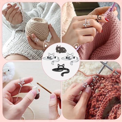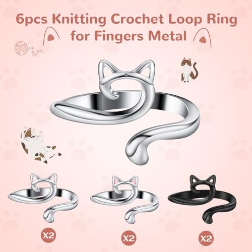 6pcs Knitting Crochet Loop Ring for Fingers Metal Open Black Sliver Pink