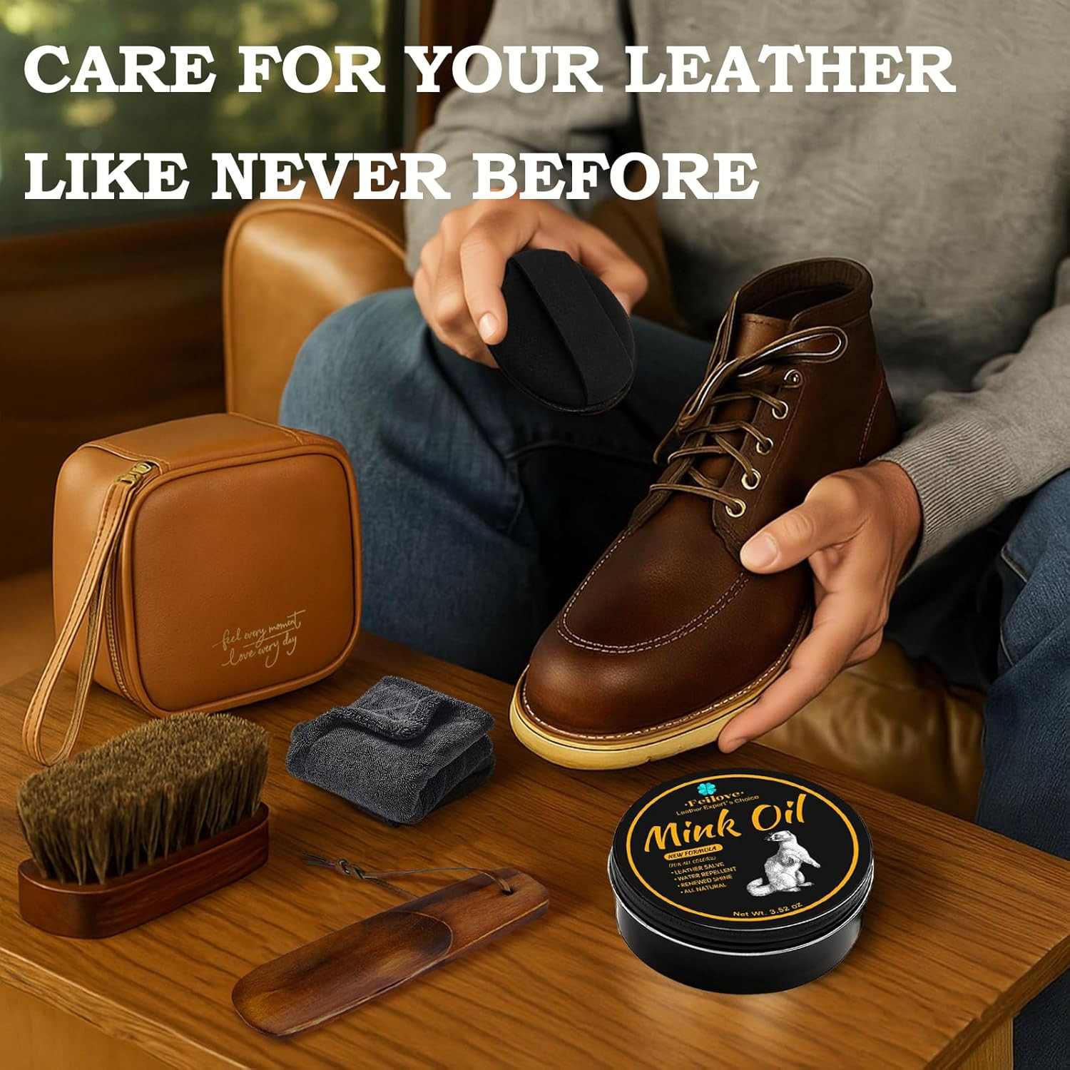 как выглядит 4-In-1 Mink Oil Leather Conditioner and Cleaner 3.52 Oz - Premium Waterproof For фото