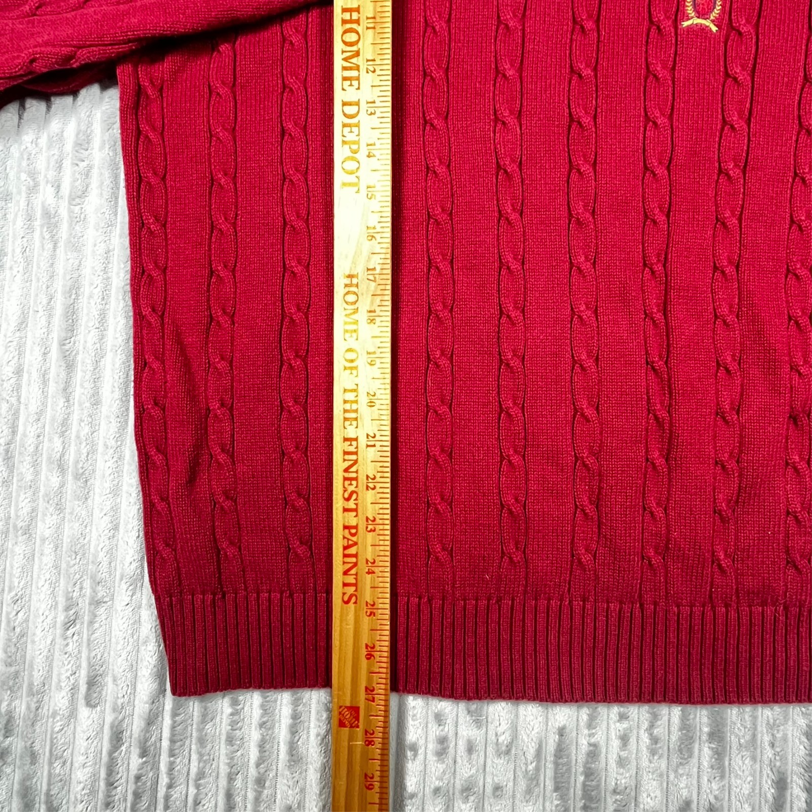 как выглядит Tommy Hilfiger Cable Knit Sweater Mens L Burgundy Crest Logo Preppy Y2K Flaw фото