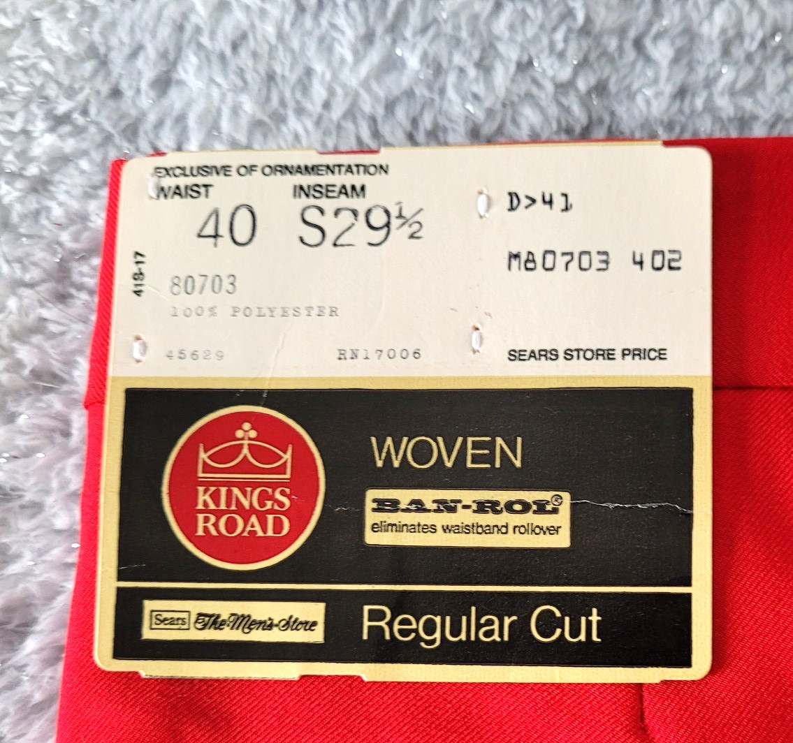 Vintage Sears Pants Mens 40 X 29.5 Red Sunday Slim Chino Casual Style C9402