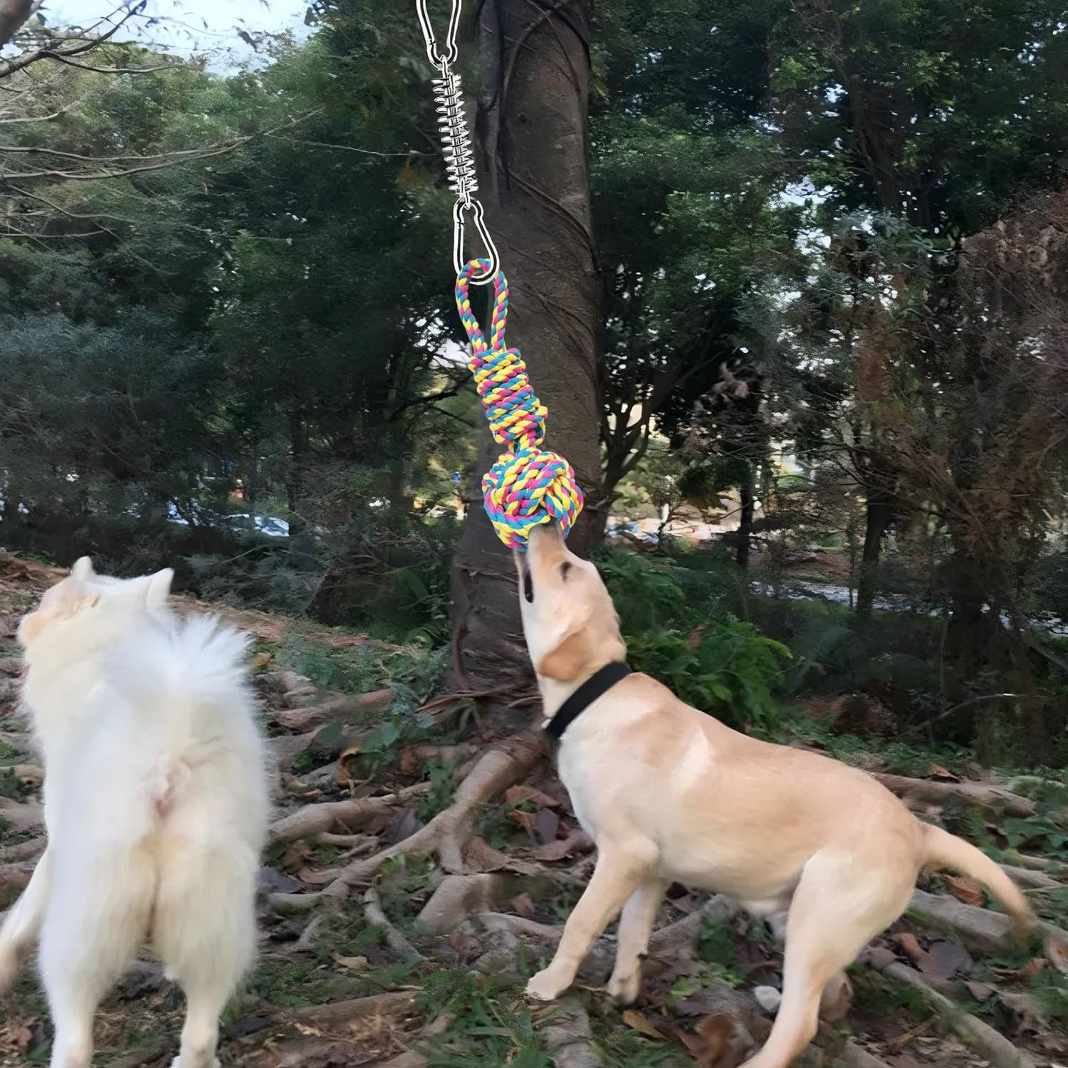 Outdoor Dog Bungee Tug Toy, Spring Pole Rope Tether Tug of War Toy for Aggressiv