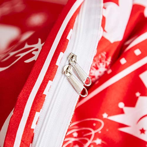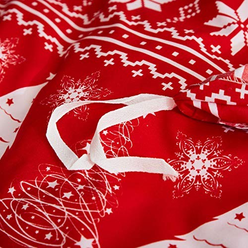 3 Pieces Christmas Duvet Cover Set, Red and White Twin- 68x90 Reindeer