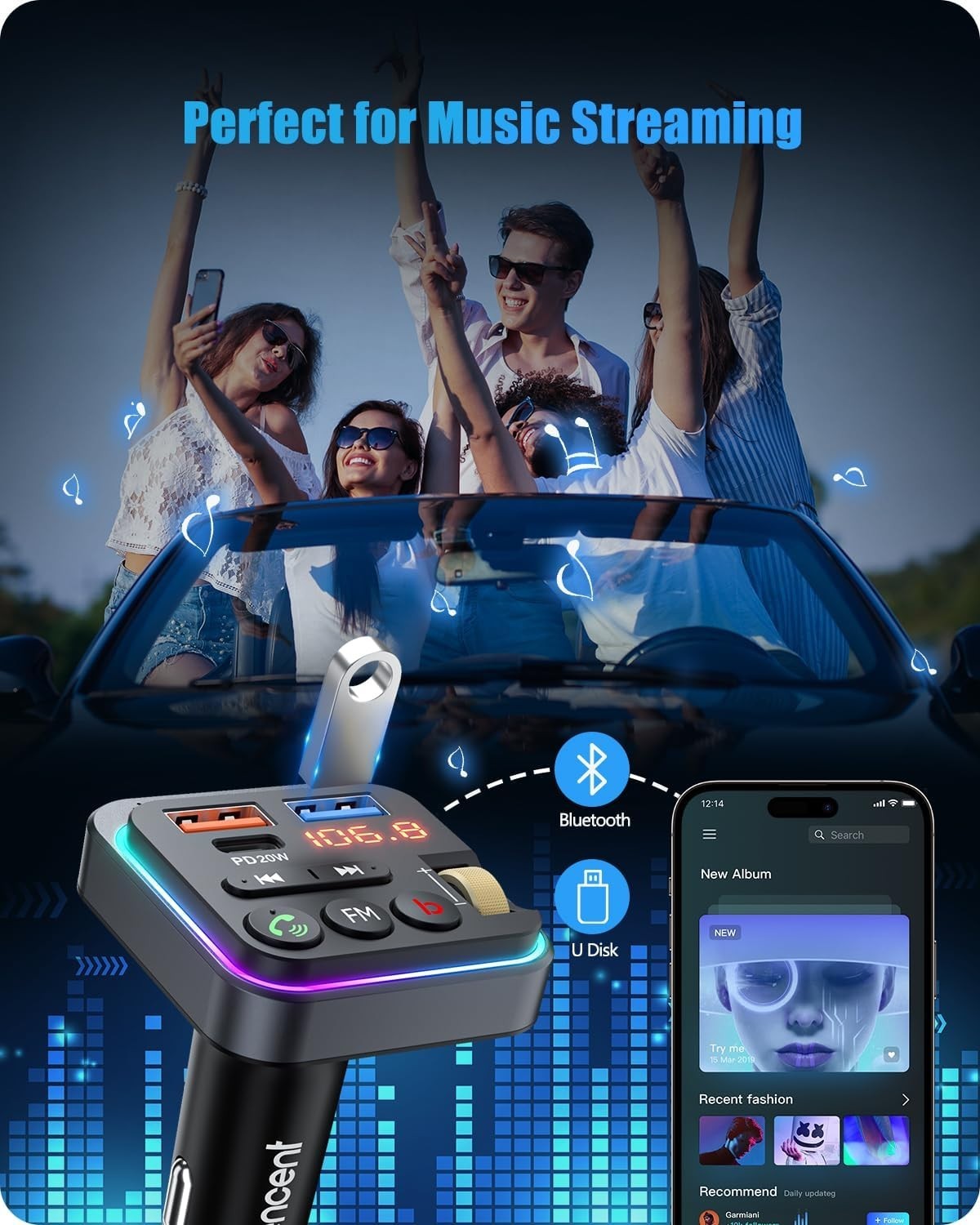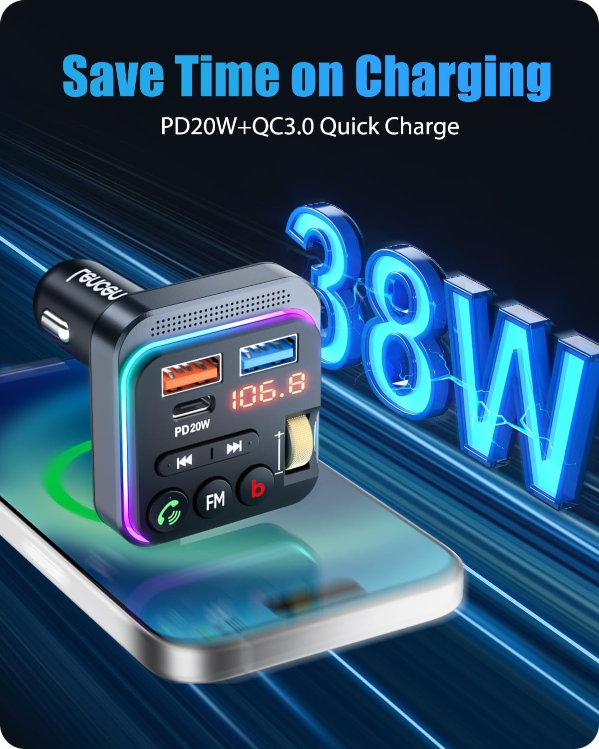 PD 20W Bluetooth FM Transmitter Wireless Mic with HiFi Sound Perfect for Cars