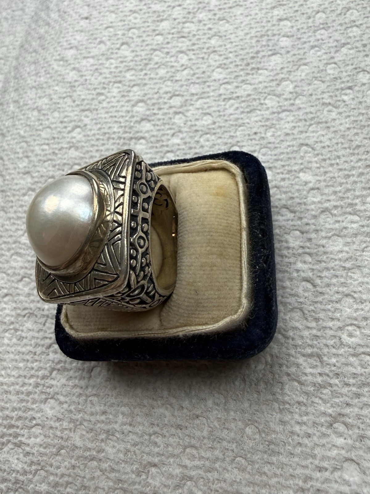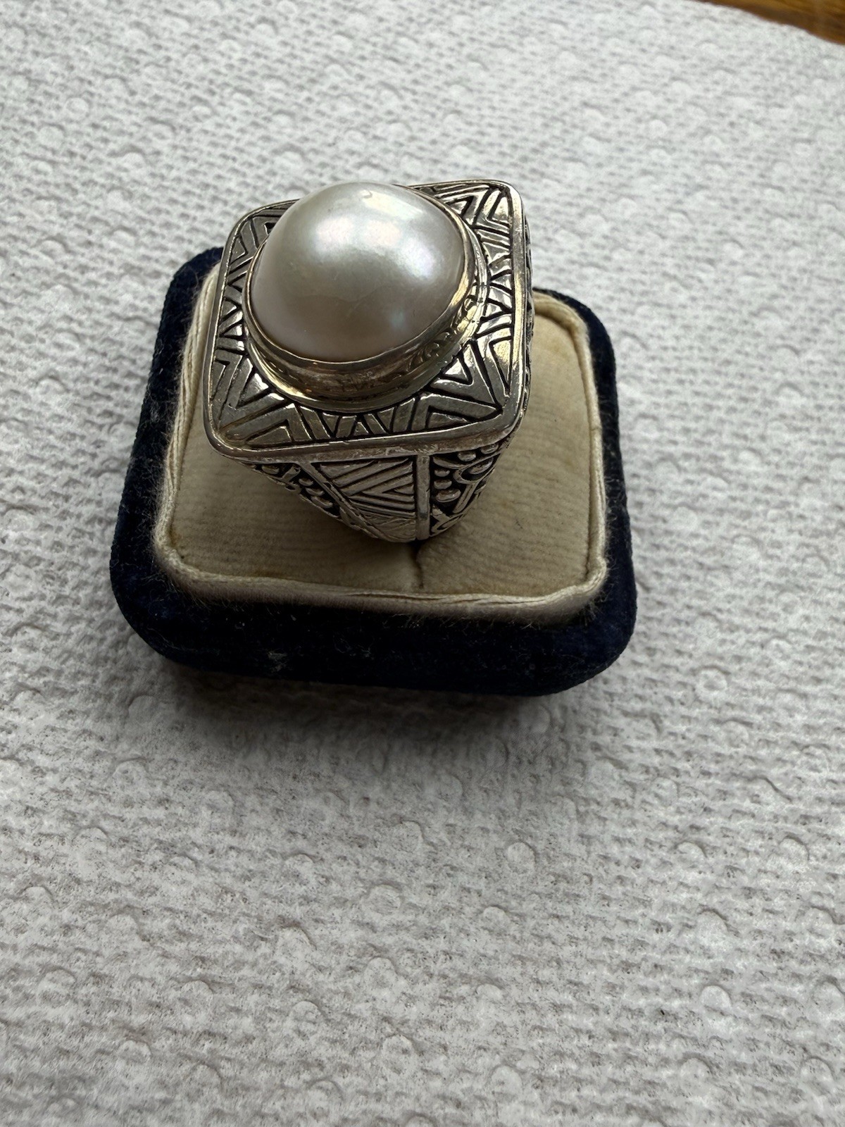 как выглядит Detailed Pearl Ring Sterling Silver 925 Oversized Size 6.5 20.7g фото