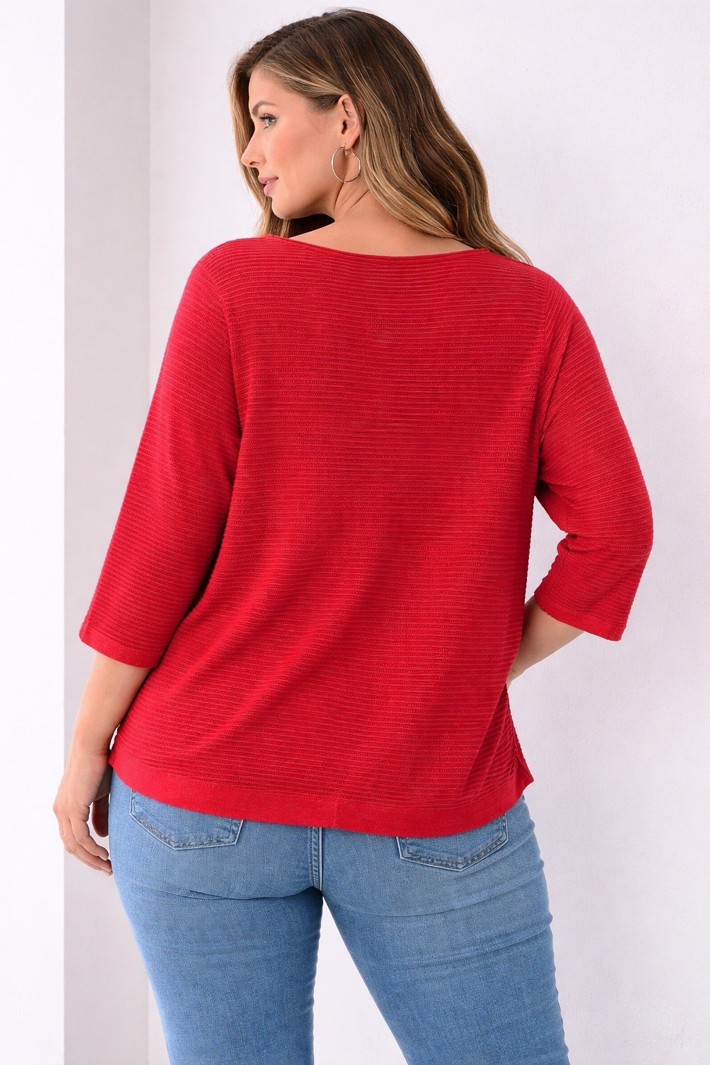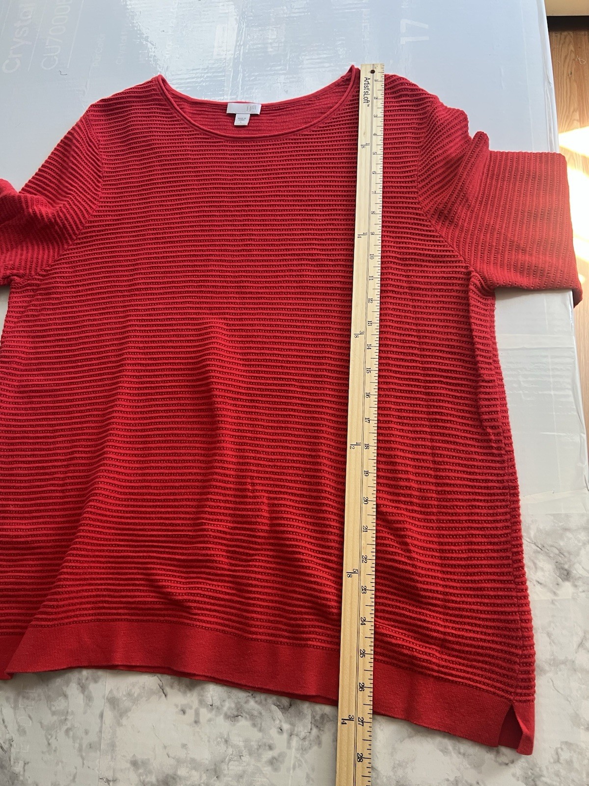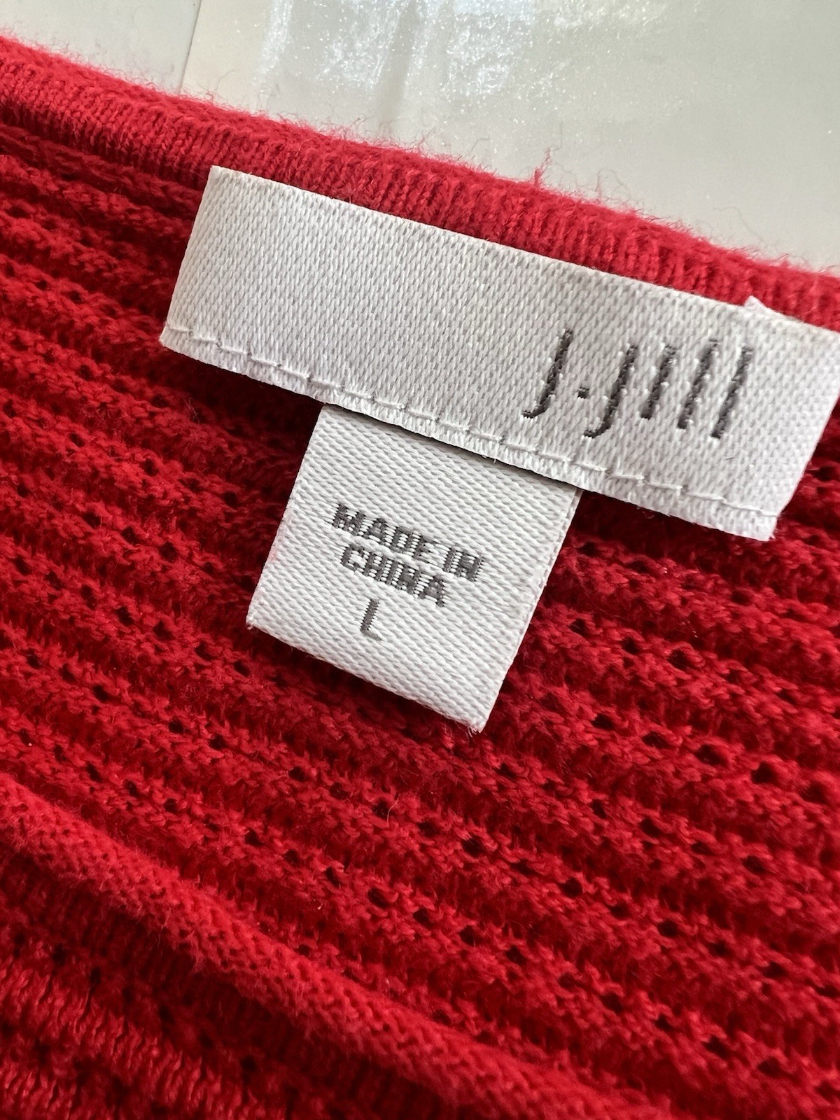 как выглядит J Jill Womens Red Textured Knit Pullover Sweater Cotton Blend 3/4 Sleeve Size L фото