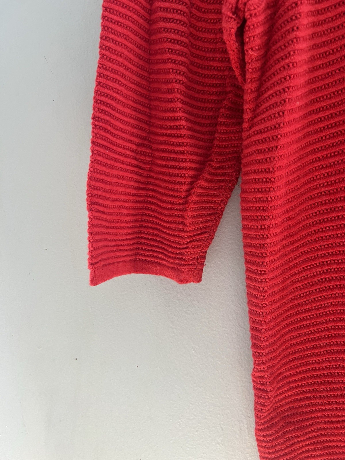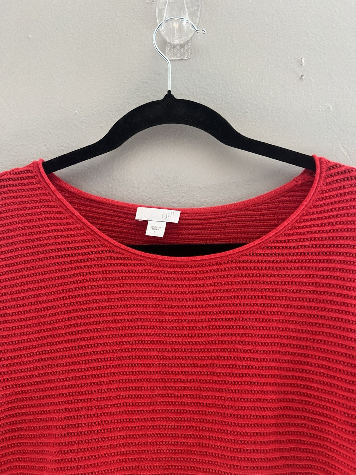 J Jill Womens Red Textured Knit Pullover Sweater Cotton Blend 3/4 Sleeve Size L