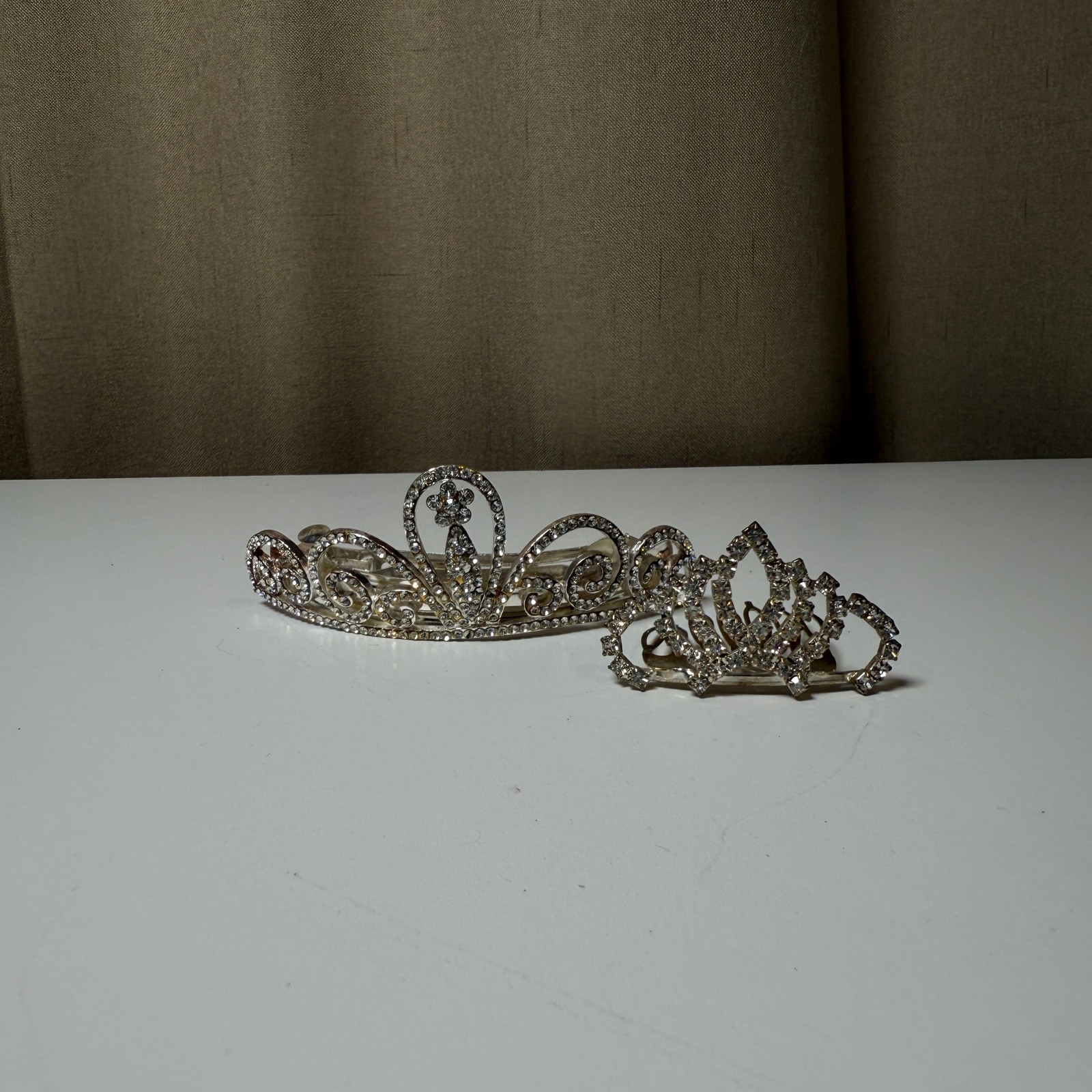 Kids Rhinestone Tiara Crown Set Silver Tone Girls Princess Hair Accessories