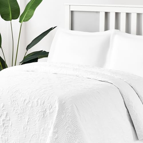 White Quilt California King Size - Damask Cal King-111x106 White Damask
