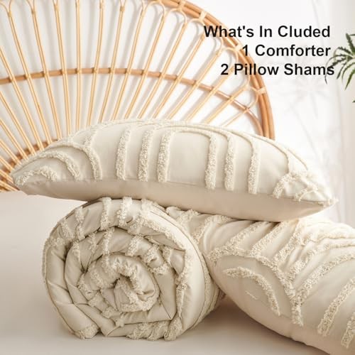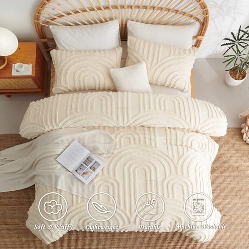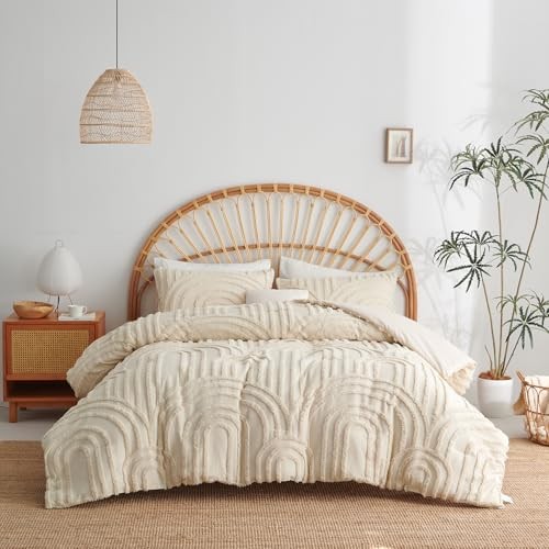 Boho Comforter Set Size Beige Tufted Rainbow Textured Queen Beige Rainbow
