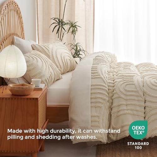 как выглядит Boho Comforter Set Size Beige Tufted Rainbow Textured Queen Beige Rainbow фото