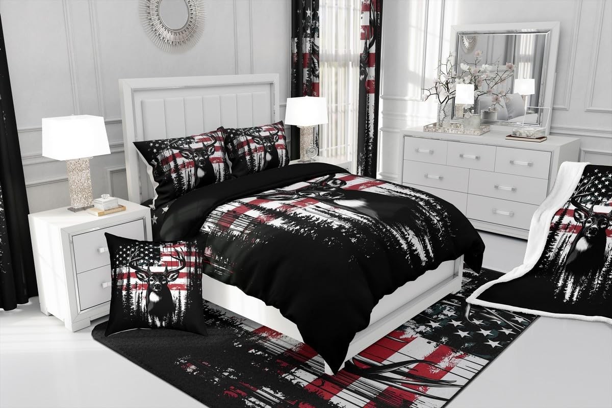 Flag Comforter Set Queen Size Cute Deer Bedding Set for Boys Girls Deer Hunti...