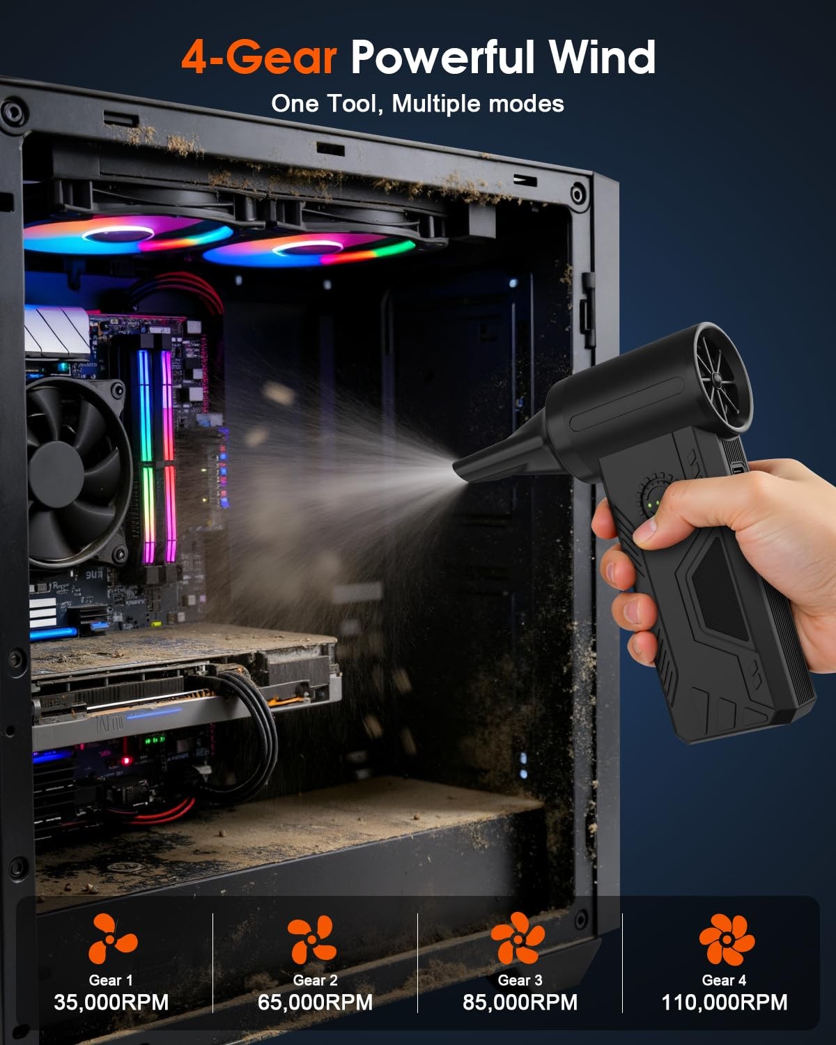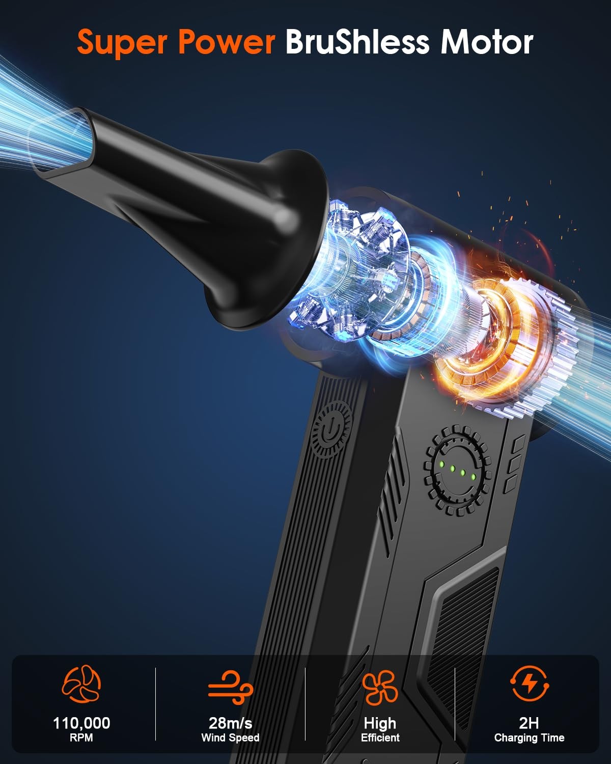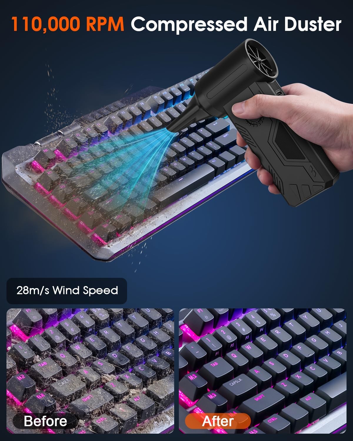 Compressed Duster- 110000 RPM Brushless Motor,15W Fast Charge,4-Speed Adjusta...