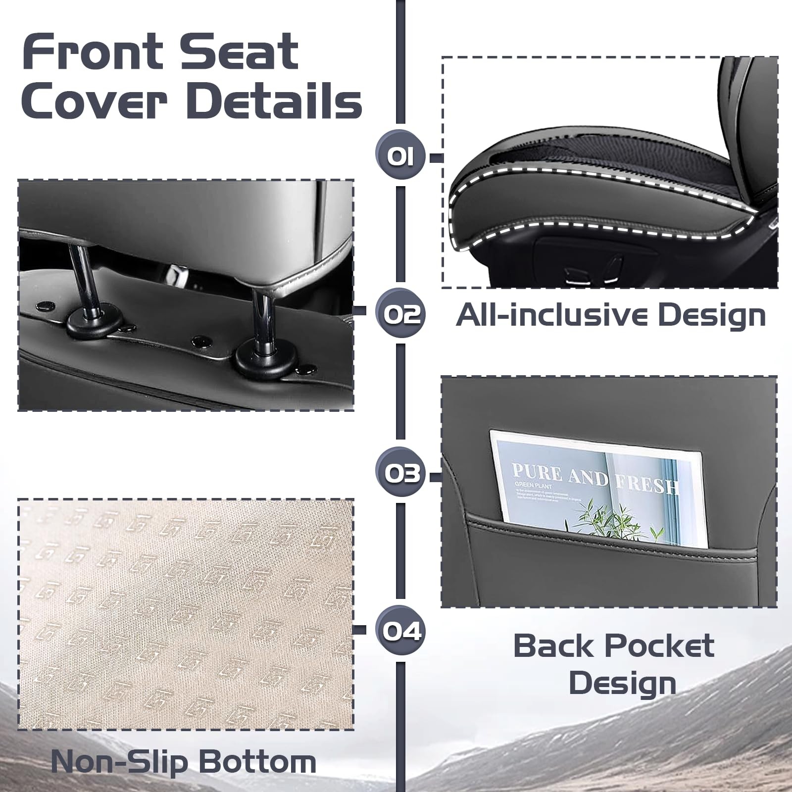 Waterproof Leather Car Seat Covers for2003-2026Honda Pilot,Full Set, Gray Black