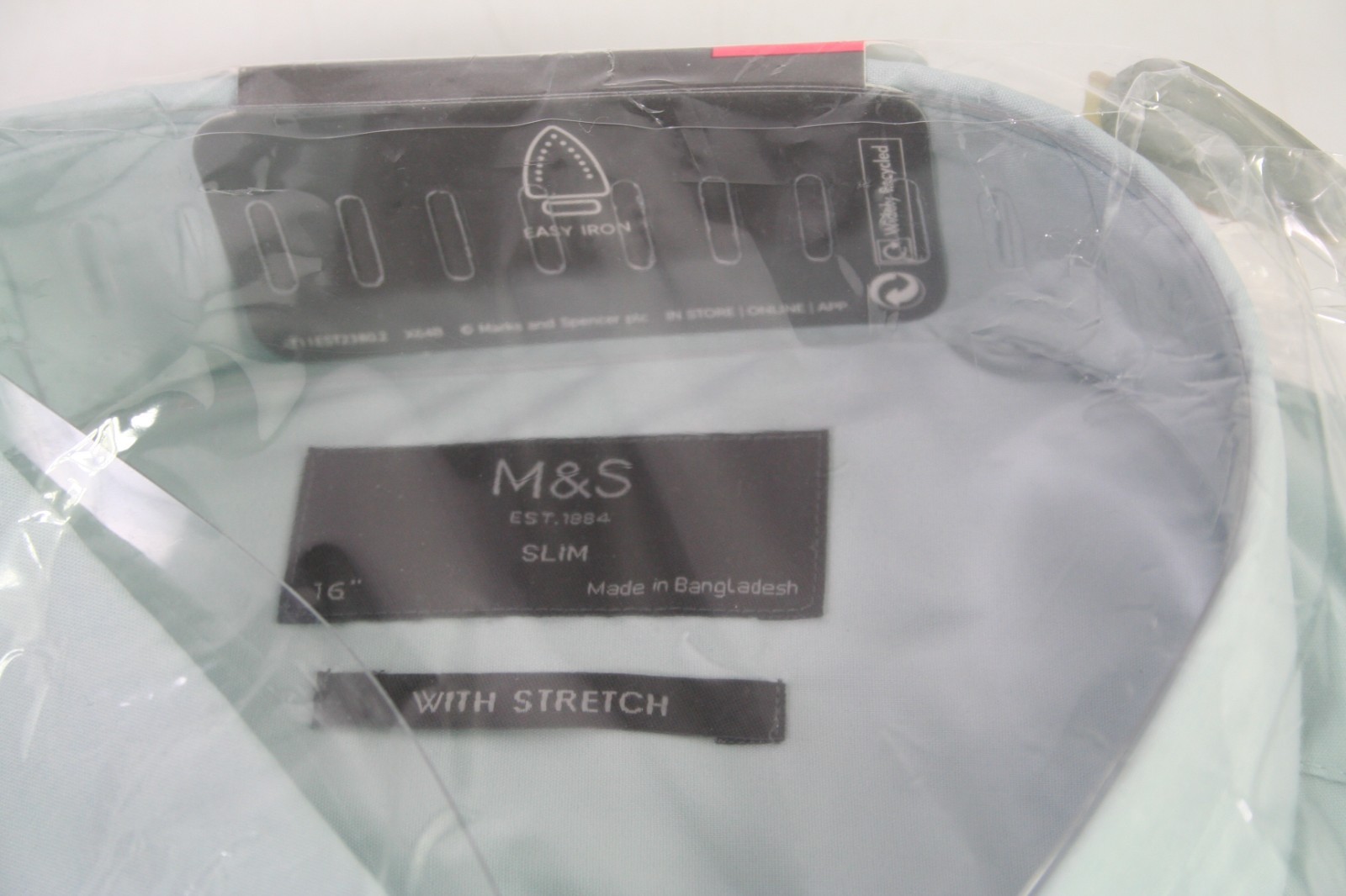 как выглядит M S Marks Spencer Blue Slim Fit 16" Collar Shirt Mens фото