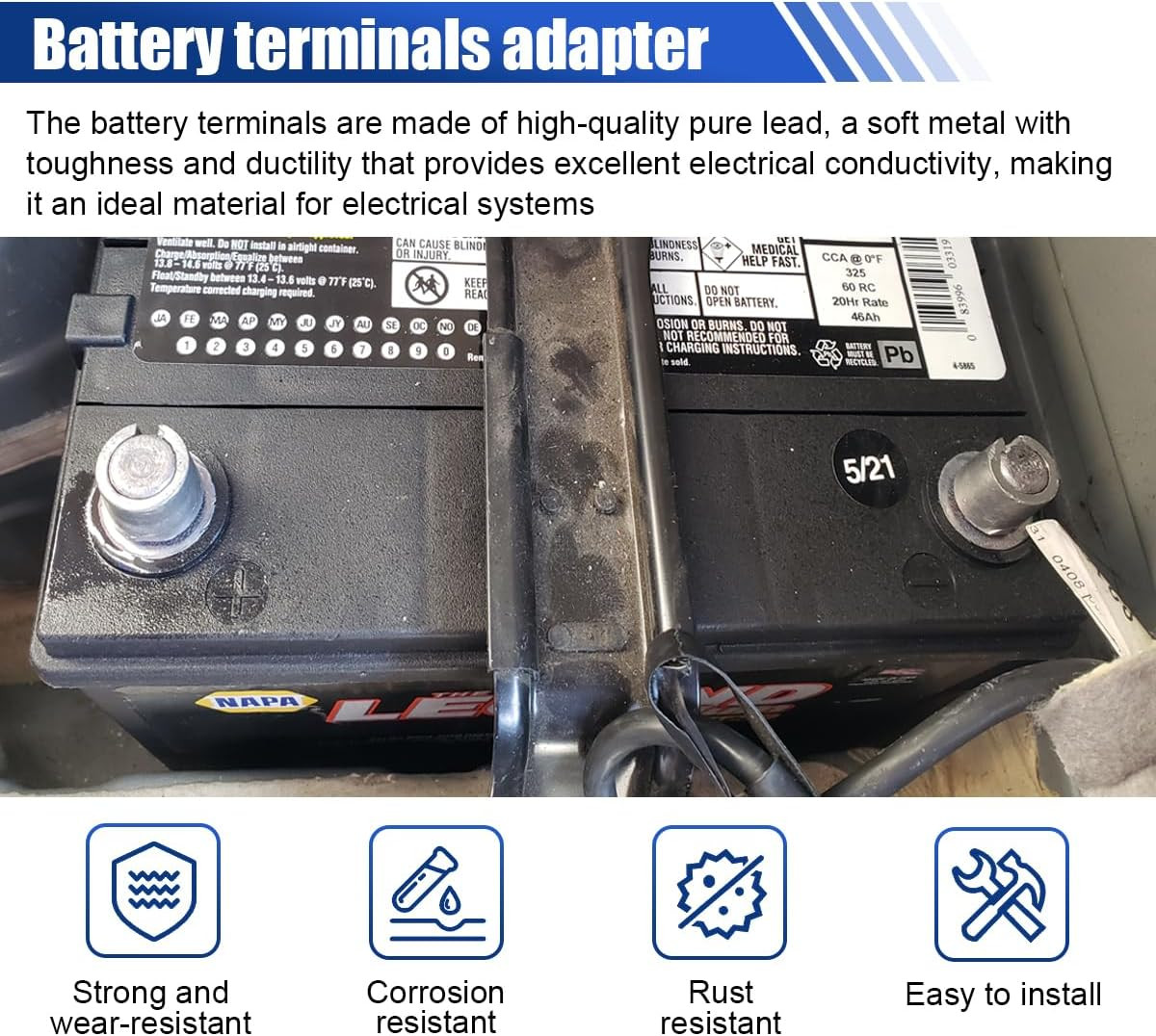 Car Battery Post Shims, Pure Lead Anode Cathode Terminal Converter Adaptor, Posi
