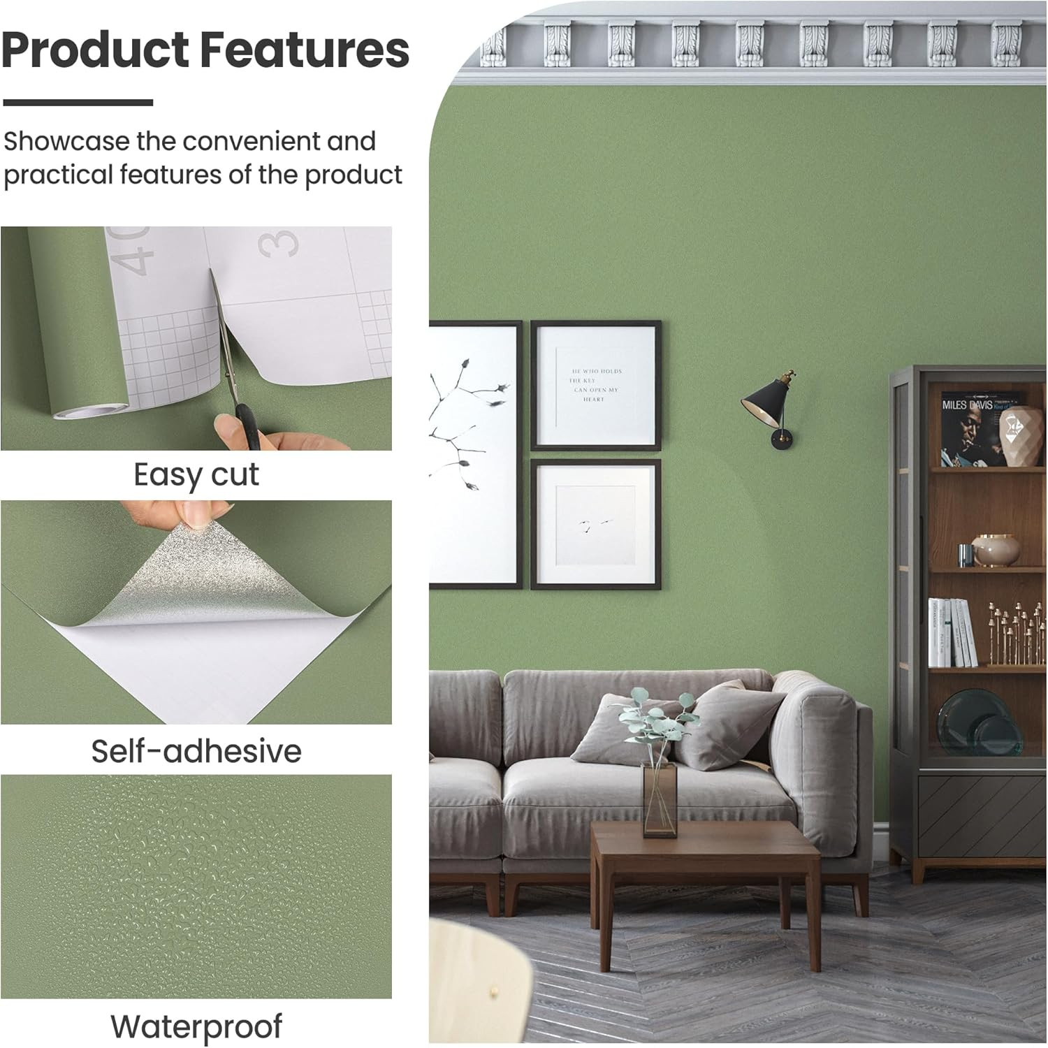 Green Peel and Stick Wallpaper, 15.7 X 118.1 Green Contact Paper for Cabinets