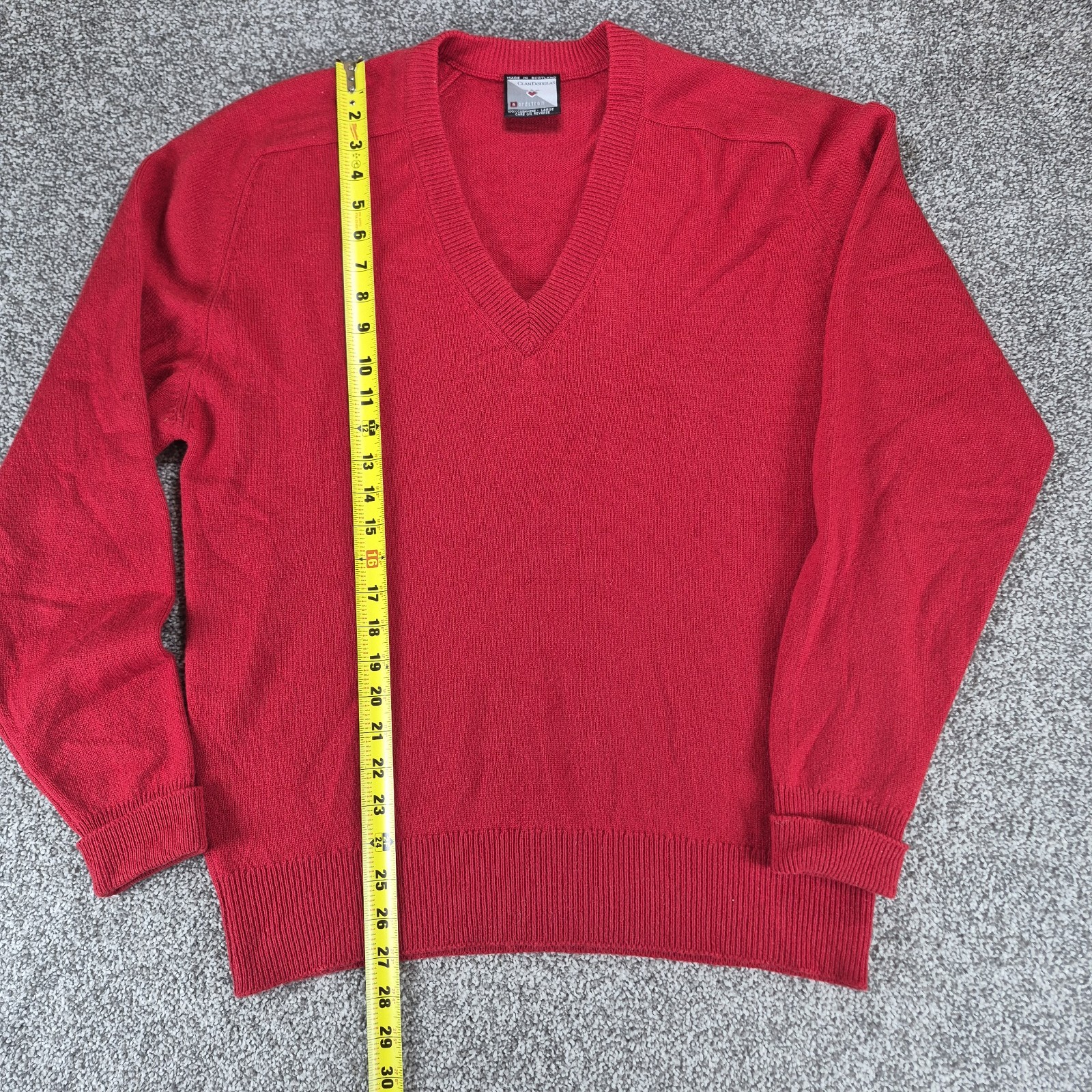 как выглядит Vtg Clan Douglas 100 Cashmere Sweater Mens Large Red V-Neck Made in Scotland фото