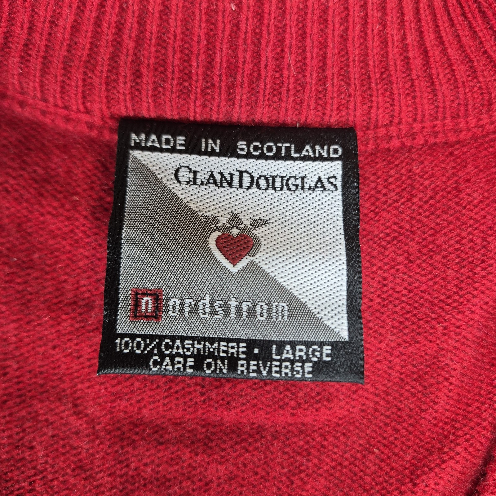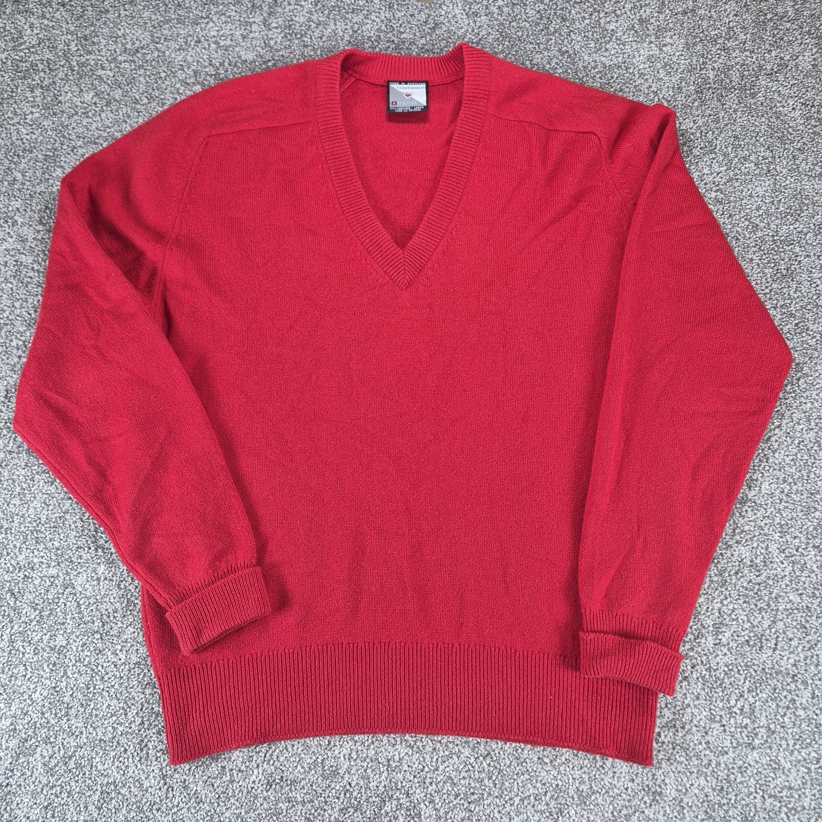 Vtg Clan Douglas 100 Cashmere Sweater Mens Large Red V-Neck Made in Scotland