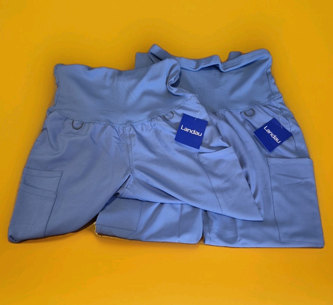 как выглядит LOT OF 2 Women s 3 Pocket Maternity Scrub Pants MED Blue Landau фото