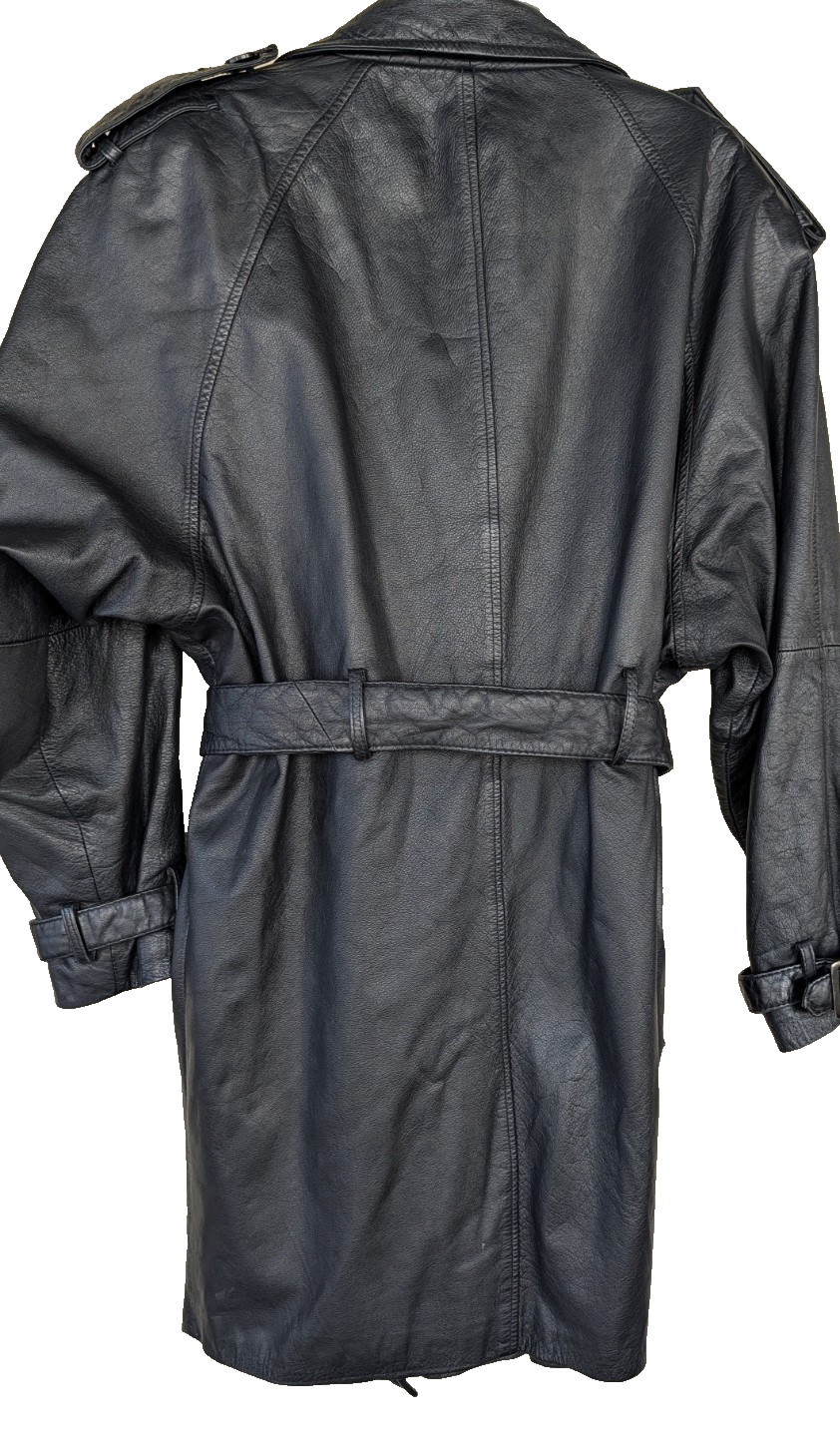 как выглядит WOMANS BLACK LEATHER BELTED TRENCH COAT 3/4 LENGTH M фото