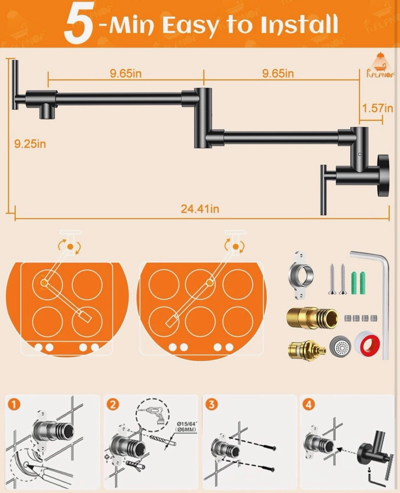 Pot Filler,Pot Filler Faucet Wall Mount-Metal Folding Stretchable-w/Swing Arm